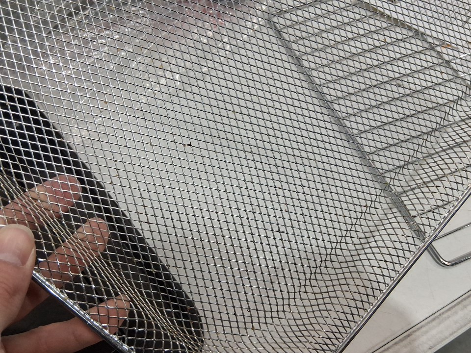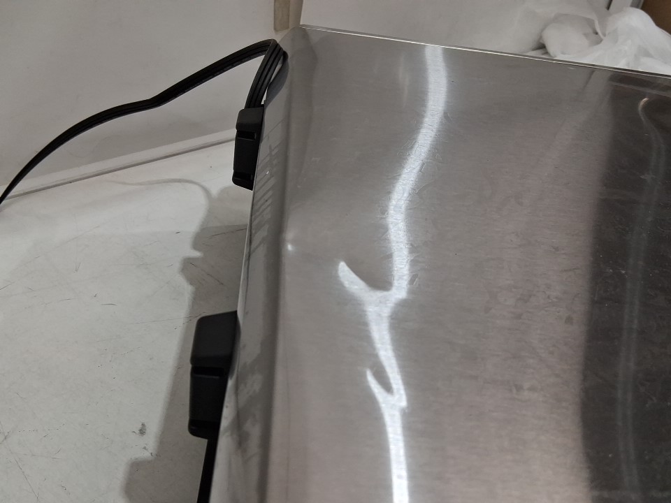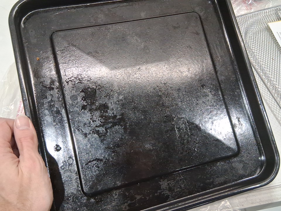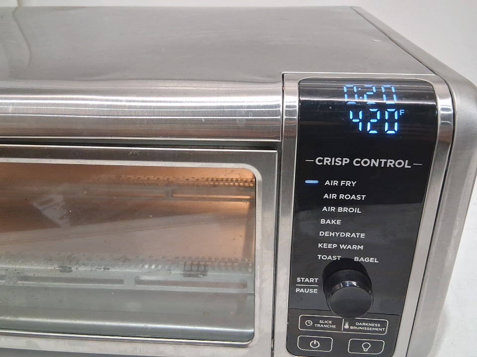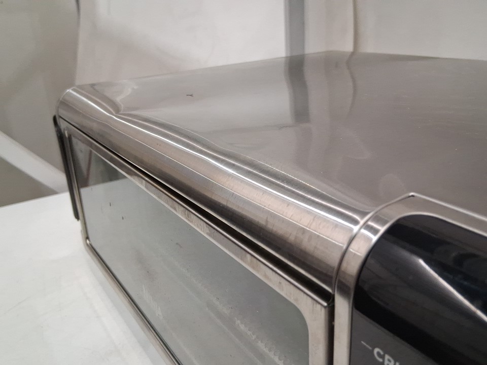 **Tested for power and heat.** Item has minor residue markings on the interior, a few small dents as well as some residue/markings on the exterior, light wear on the baking sheet and basket from previous gentle use, see photos.