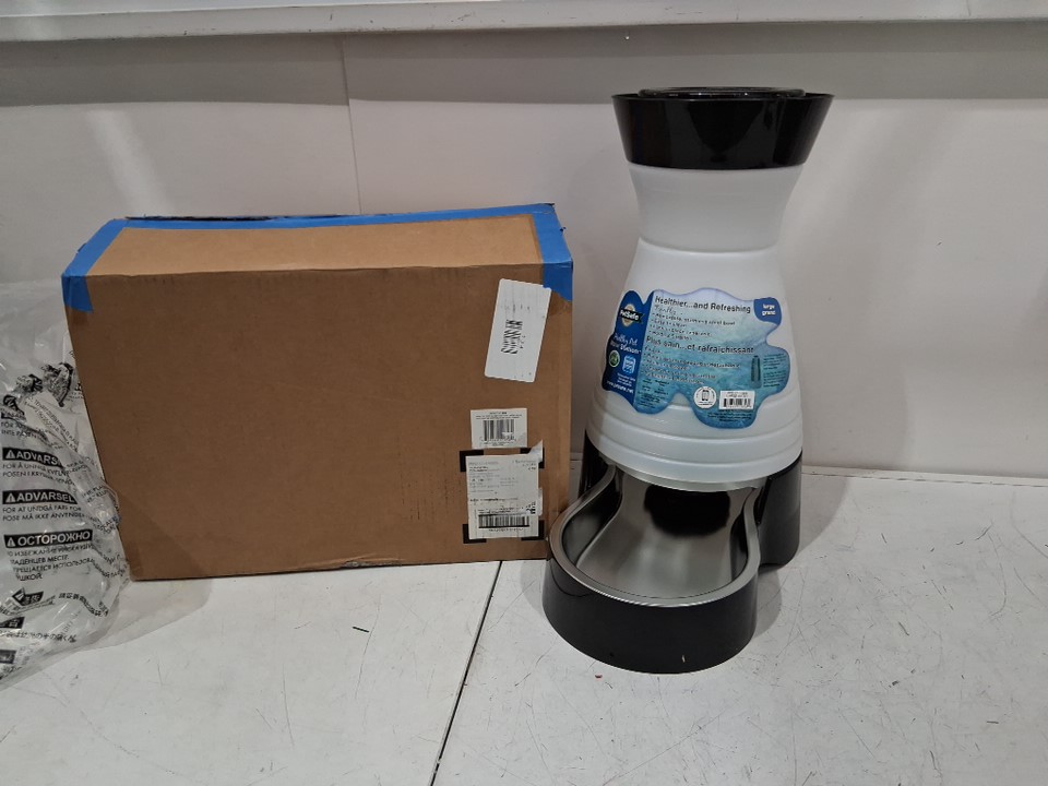 PETSAFE HEALTHY PET WATER STATION GRAVITY WATER SYSTEM WITH STAINLESS STEEL BOWL, LARGE/2.5GAL - BLACK (MODEL: PFD17-11856)