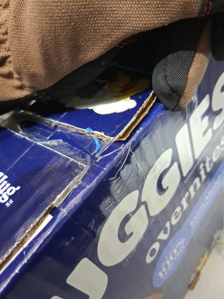 The blue taped was taken off and adhesive appears to be intact suggesting new.
