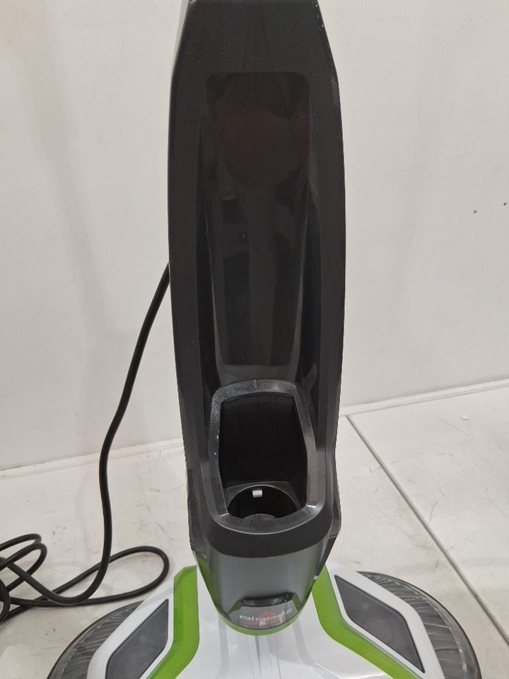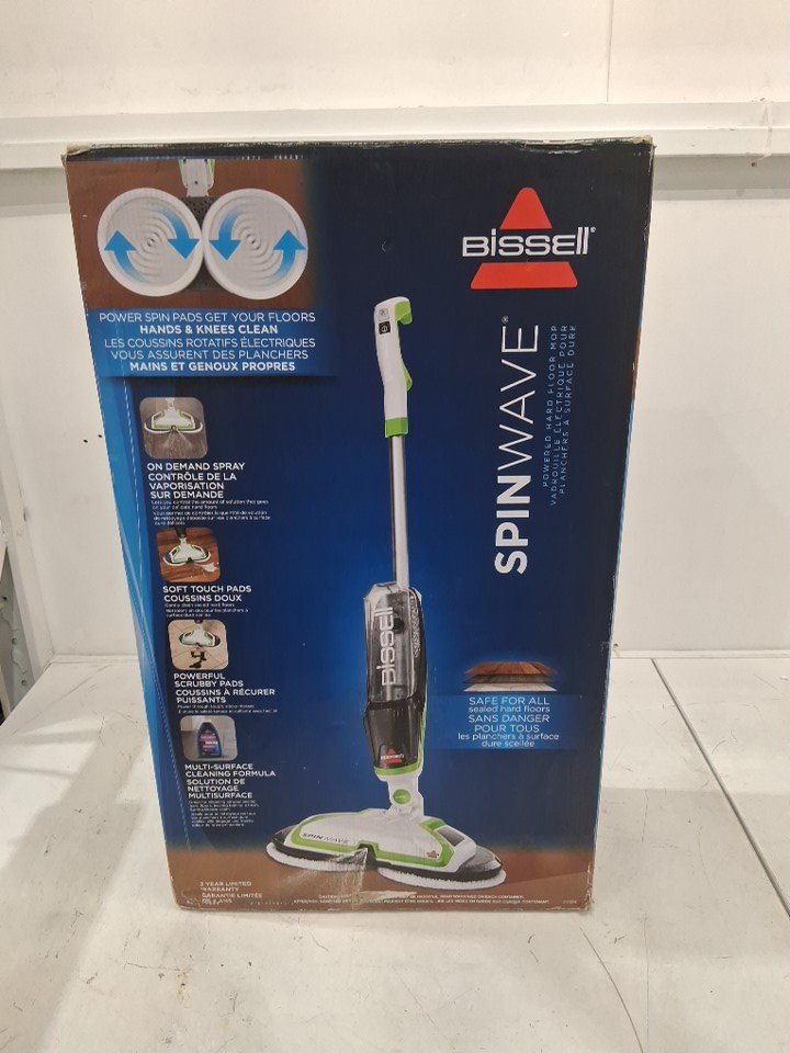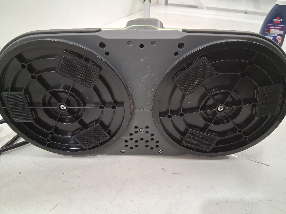 The mop pads and water/soap tank are missing from the packaging, only the mop itself and one soap bottle is included. Additionally, there is some hair and other debris stuck on the underside of the mop, indicating some potential prior use - see photos. Outside of the missing parts, the mop's power appears to function as normal, and there is no visible damage to any part. If customer can provide a replacement tank and pads, the mop should work without any issues.