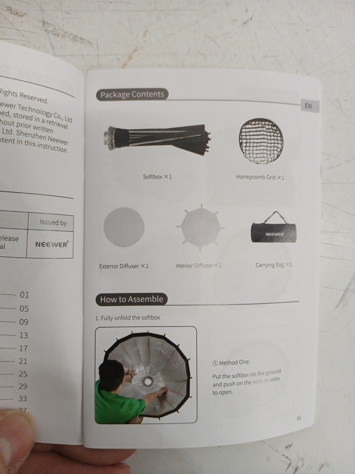 NEEWER Quick Set up Quick Folding Parabolic Softbox with Diffusers/Honeycomb Grid/Bag - 47.2" - black (model: 10102148)