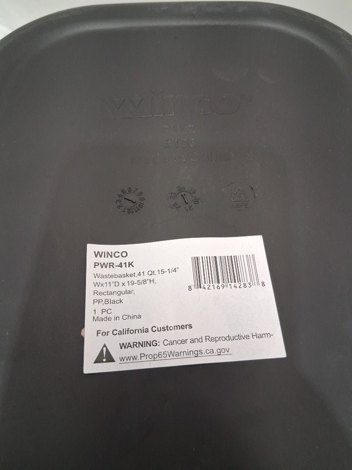 winco heavy-duty waste basket bin - 10gal/38l - black (model: pwr-41k)
