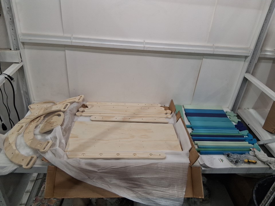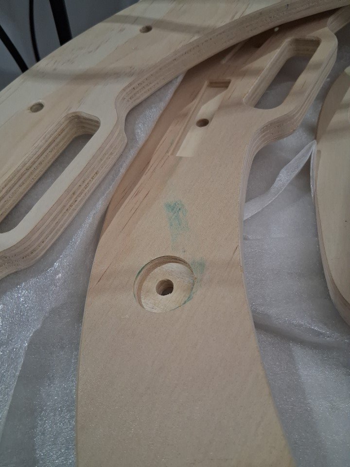 There are some indents at the screw holes and paint marks on the bare wood indicating previous assembly/use (see photos)