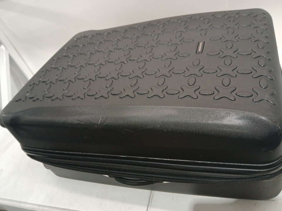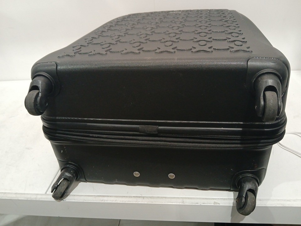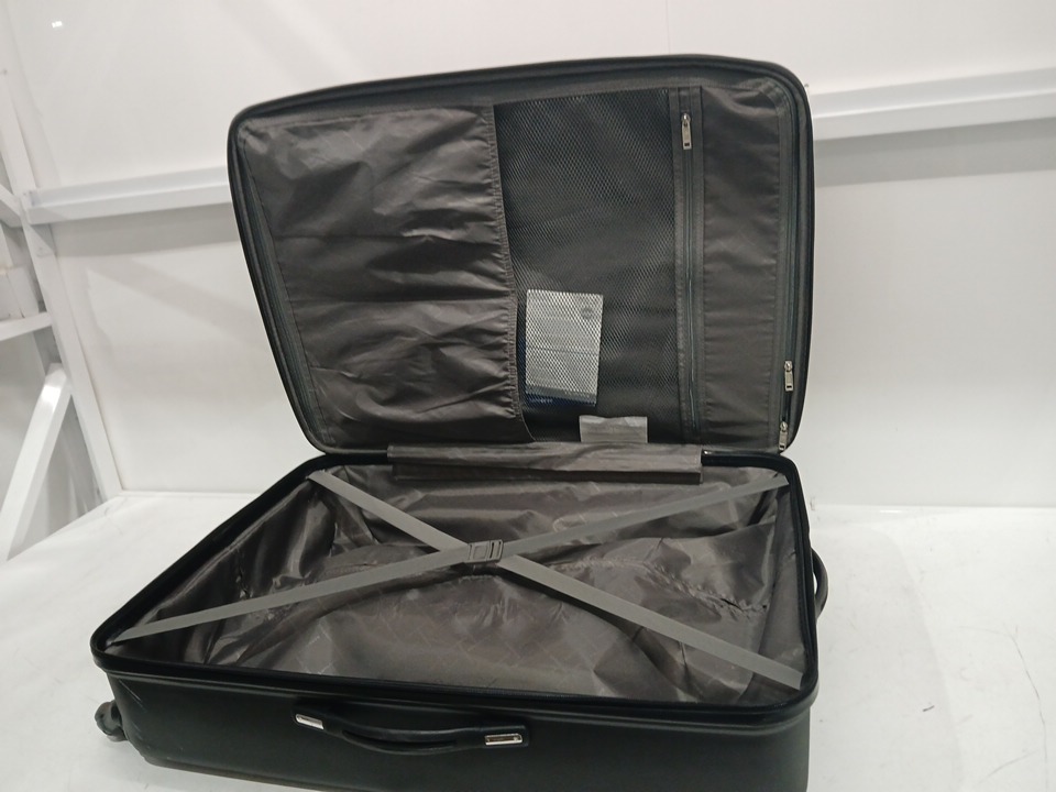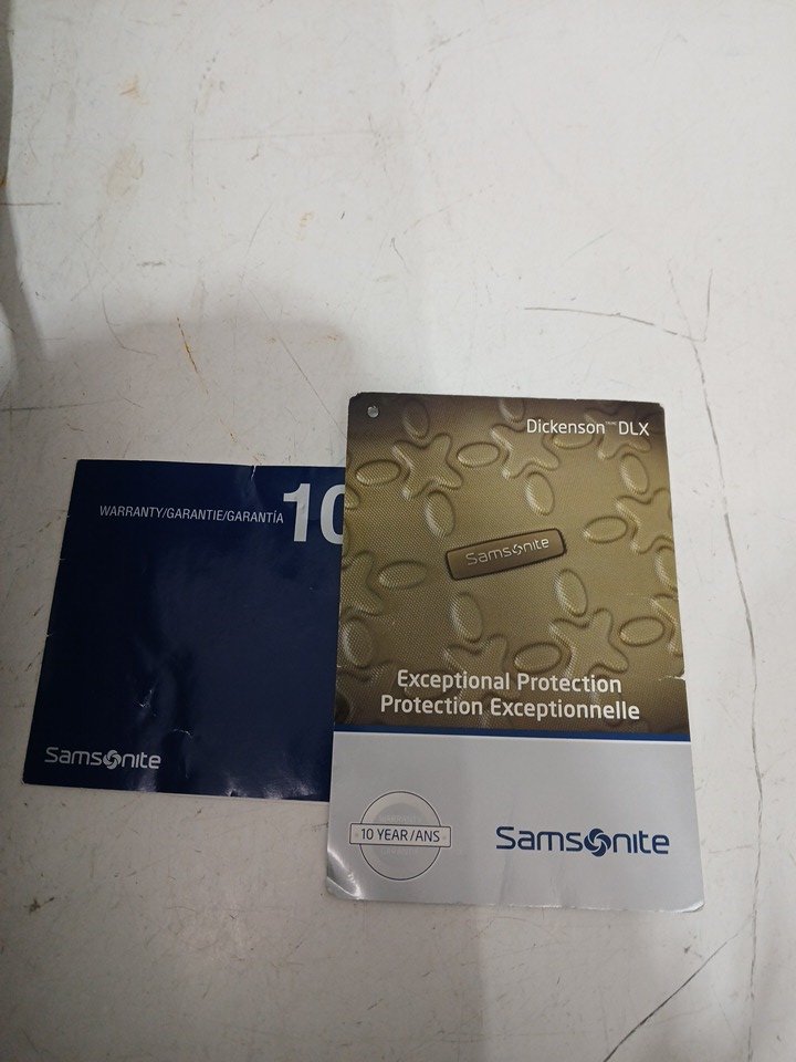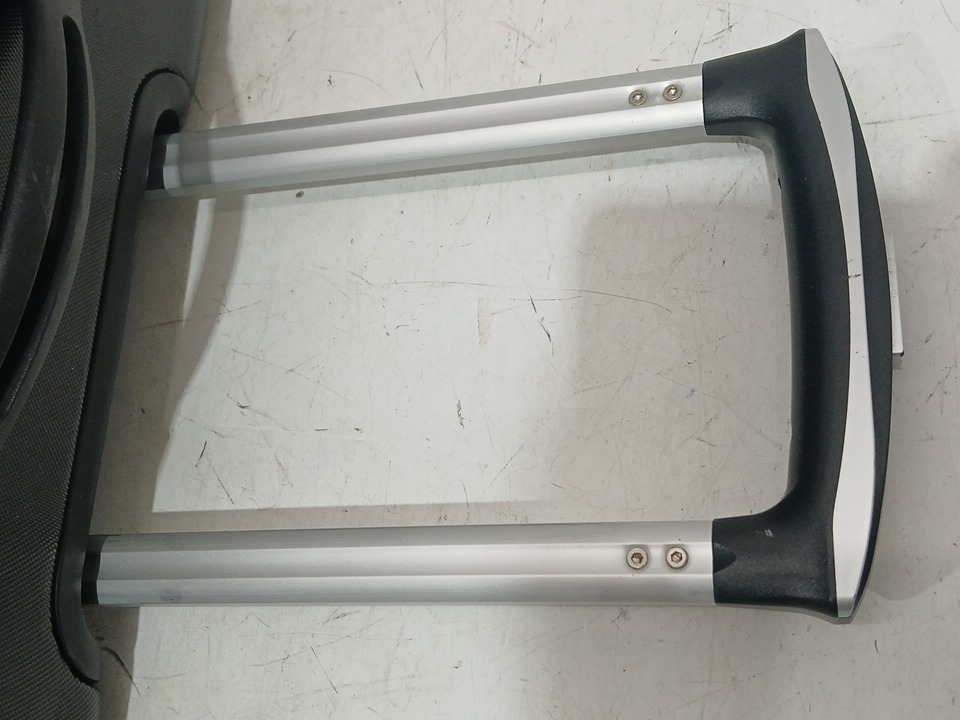 light usage on exterior, wheels and zipper. markings and dirt remain on item due to amount of use item has a harder time rolling. Wheels can be cleaned or replaced
