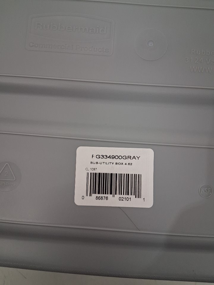 Rubbermaid Commercial Bus/Utility Tote - 20" x 15" x 5" - Grey (MODEL: g334900GRAy)