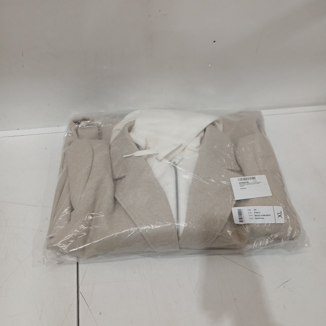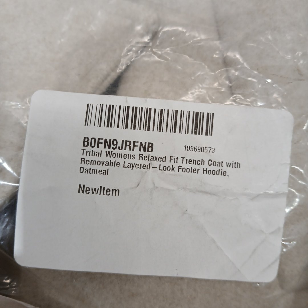 WOMEN'S TRIBAL RELAXED FIT TRENCH COAT WITH REMOVABLE LAYERED-LOOK FOOLER HOODIE - XL - OATMEAL