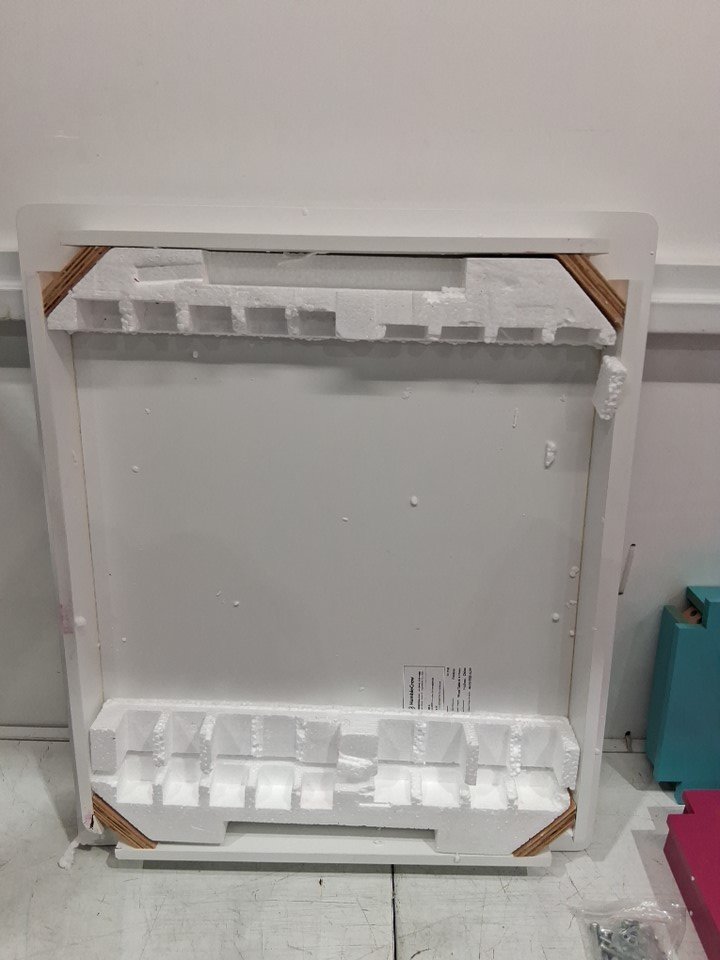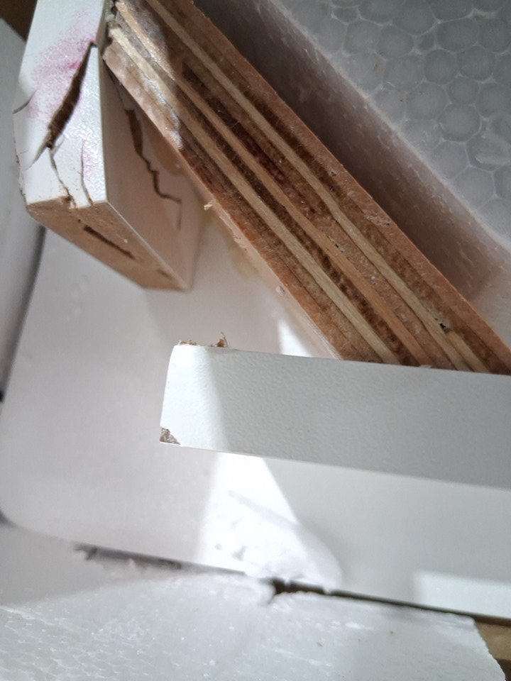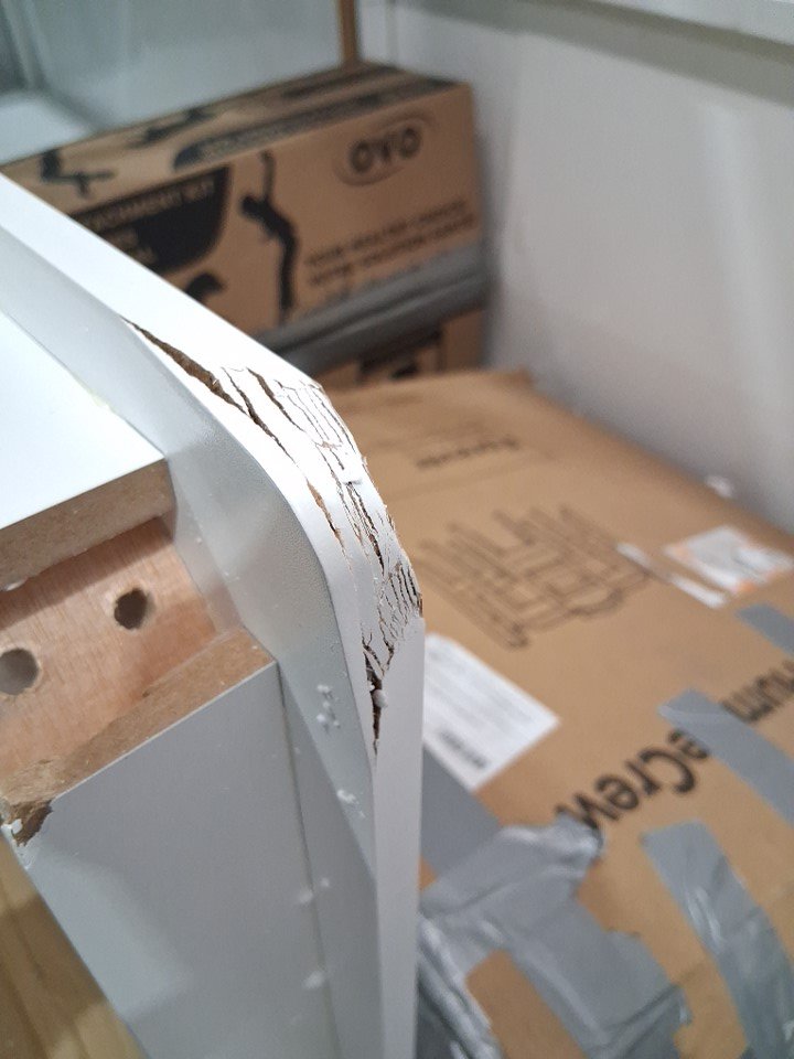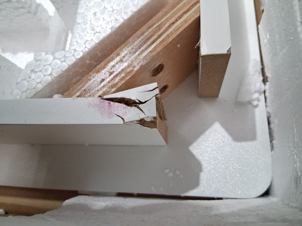 Please note that the lower side of the table has some cracks and chipped areas due to shipping. However, this does not affect the table once the legs are installed, as the damage is limited to the lower side panel. (Please see photos)