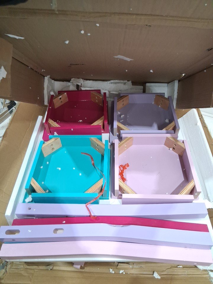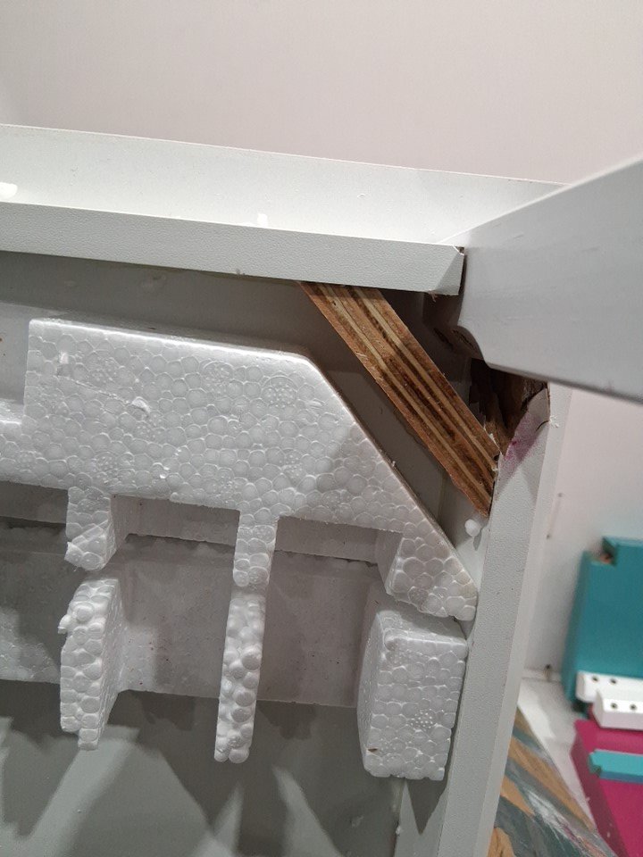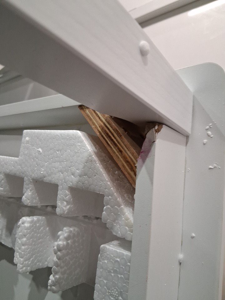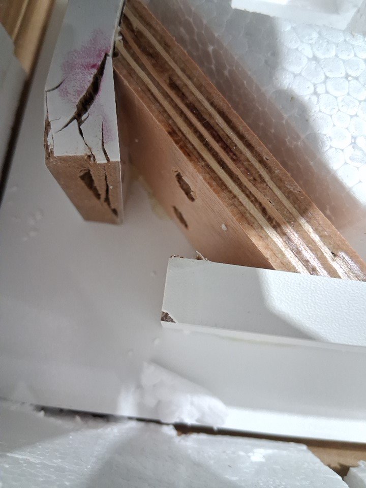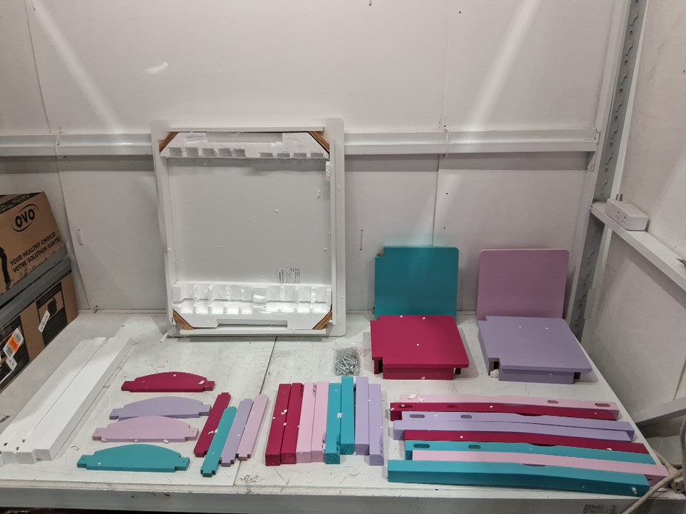 Please note that the lower side of the table has some cracks and chipped areas due to shipping. However, this does not affect the table once the legs are installed, as the damage is limited to the lower side panel. (Please see photos)