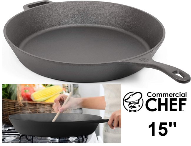 Commercial Chef Pre-Seasoned Cast Iron Skillet pan - 15'' - grey (model- chfs1500)