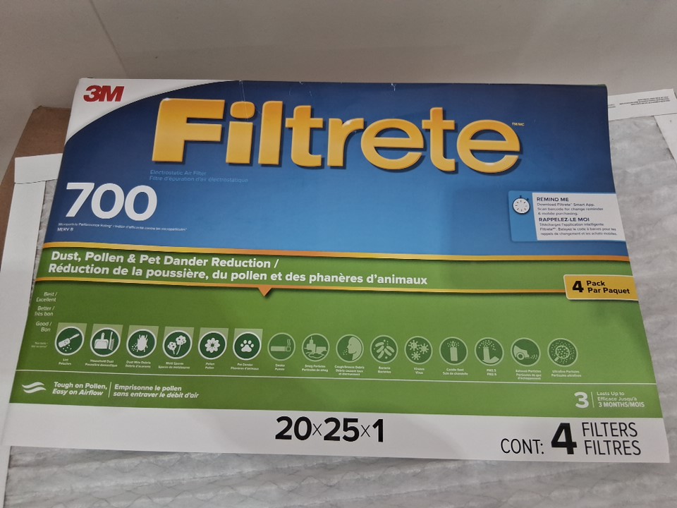 4pk 3M Filtrete AC Furnace Air Filter - MPR 700 - MERV 8 - 20" x 25" x 1" - white