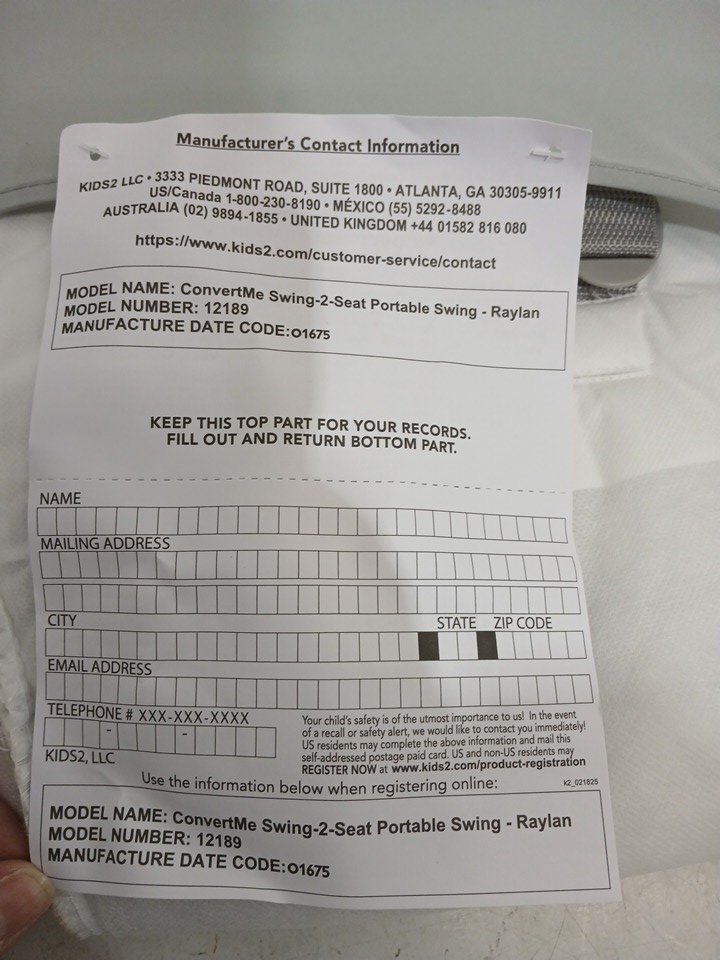 INFANT'S INGENUITY CONVERTME SWING-2-SEAT CHAIR - 0-9M - WHITE/GREY RAYLAN - (MODEL:B6)