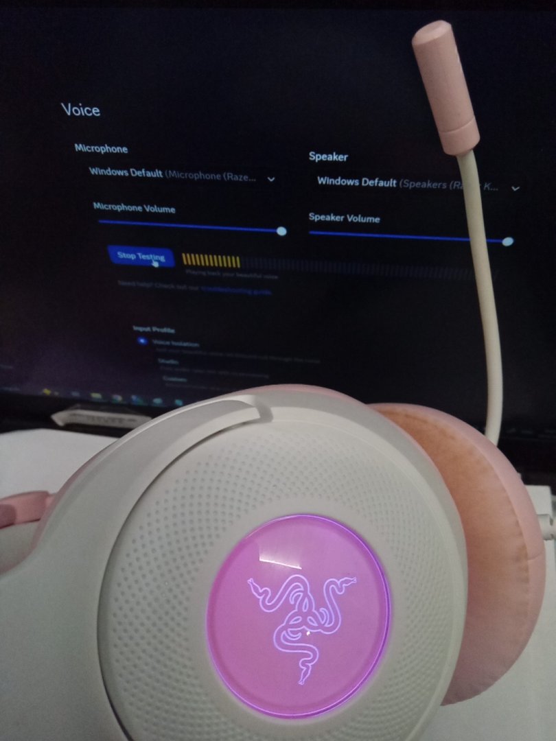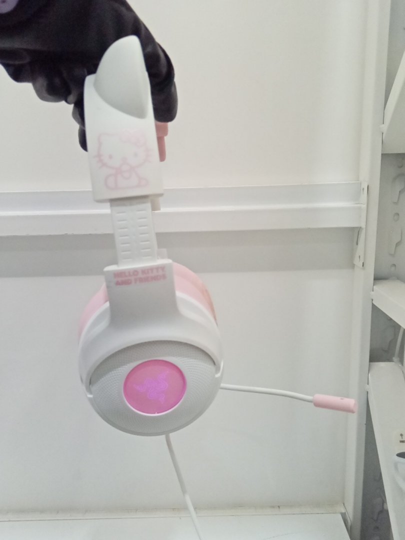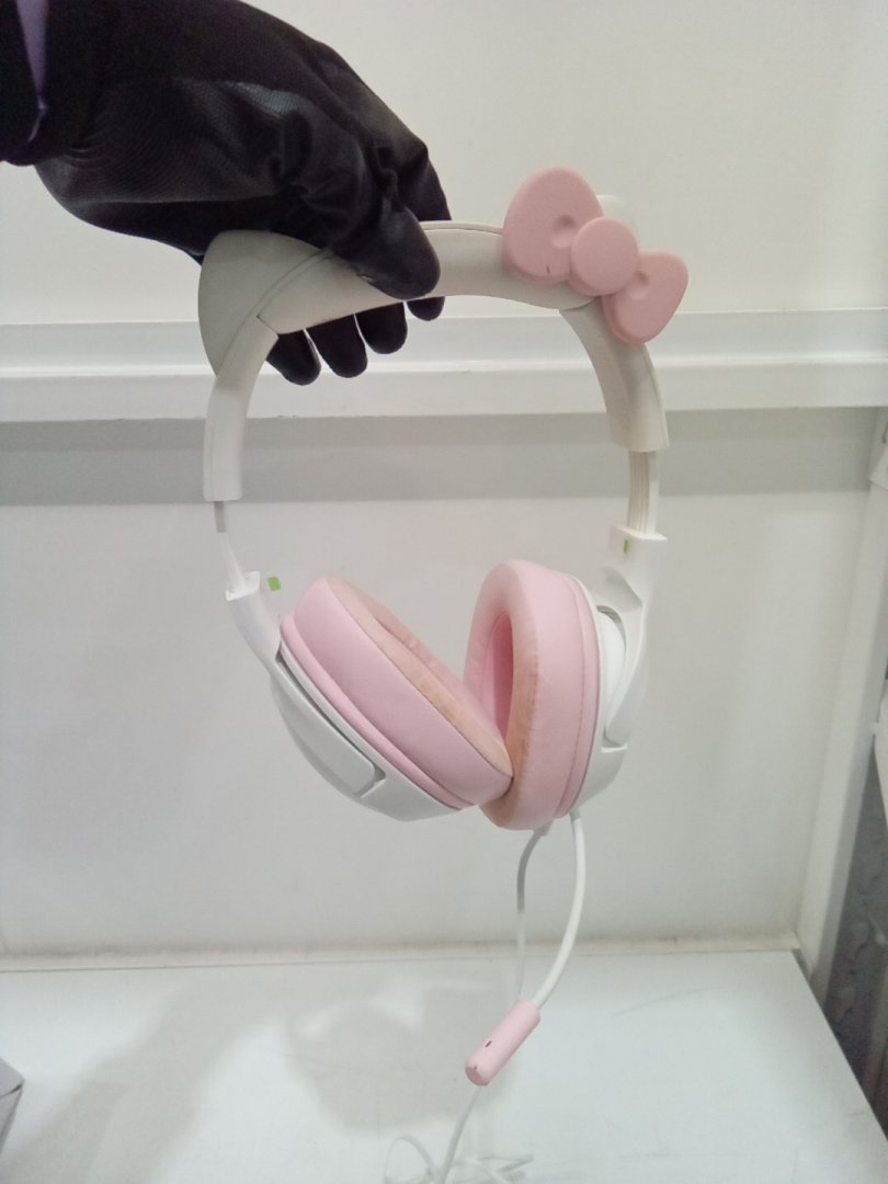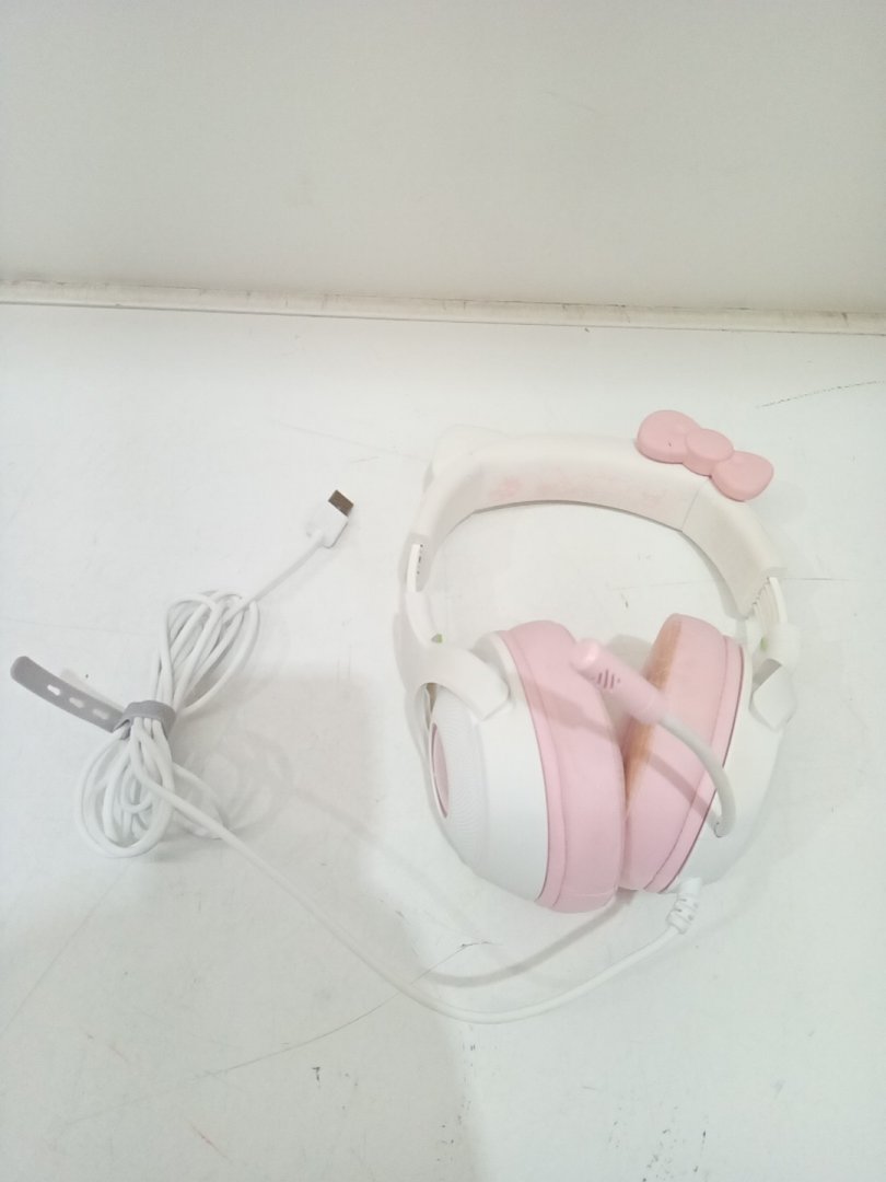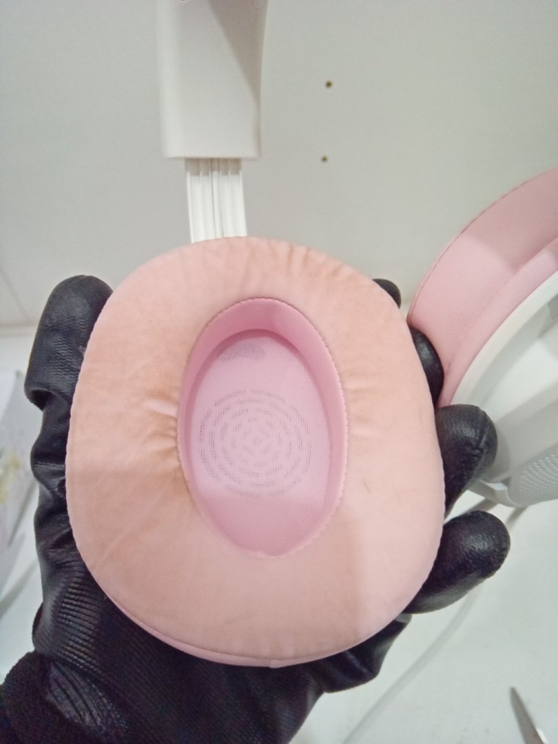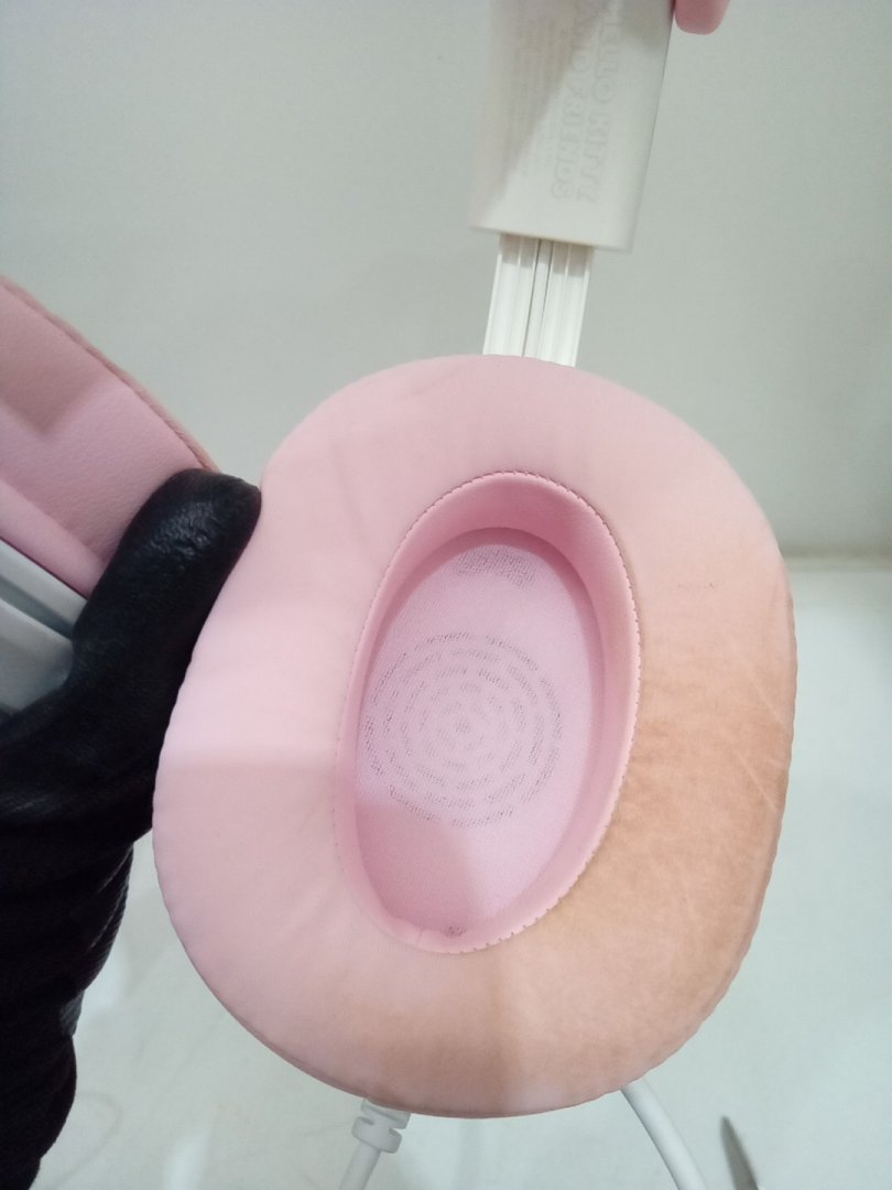 Foundation/makeup stains on the ear cushions and part of the band, and small scuff on bow from prior use.