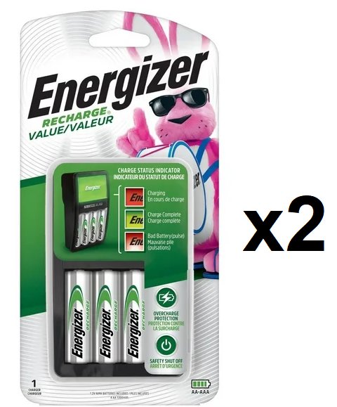 2 Energizer Recharge Value charger for NiMH Rechargeable AA and AAA Batteries