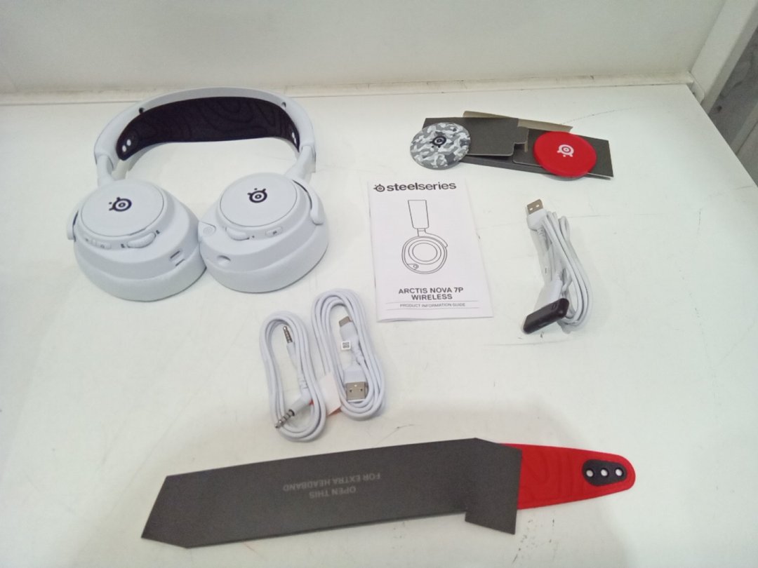 Steelseries Arctis Nova 7P Wireless Bluetooth Gaming Headset with USB-C Receiver, Multi-Booster Pack, 38hr Battery, and Magnetic Sideplates - Multiplatform - WHITE (model: hs31)