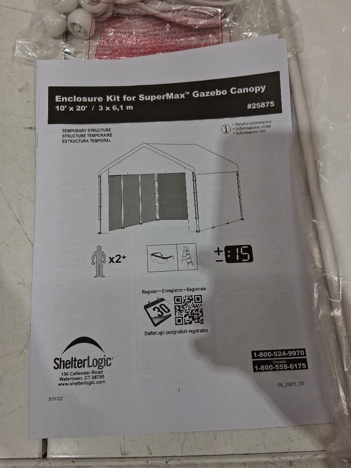 ShelterLogic Enclosure accessory kit set for supermax gazebo canopy - 10ft X 20ft - White/canopy (model: 25875)