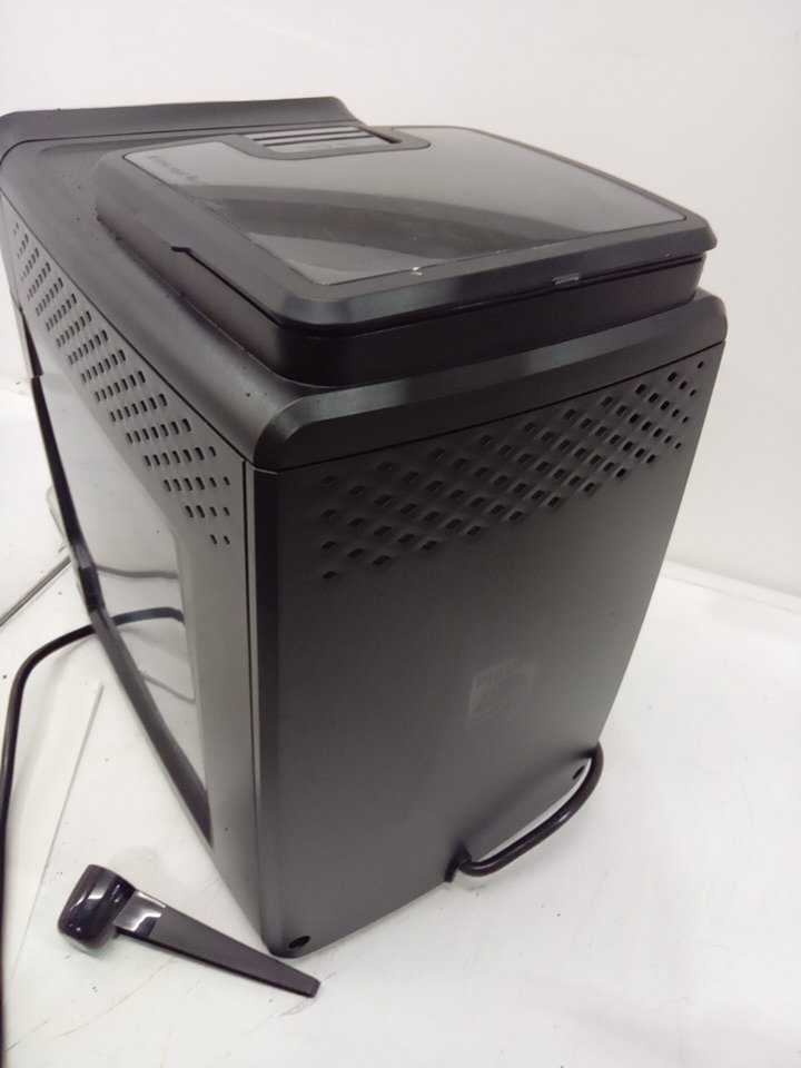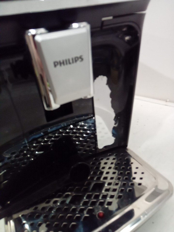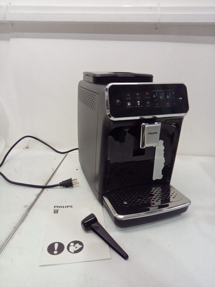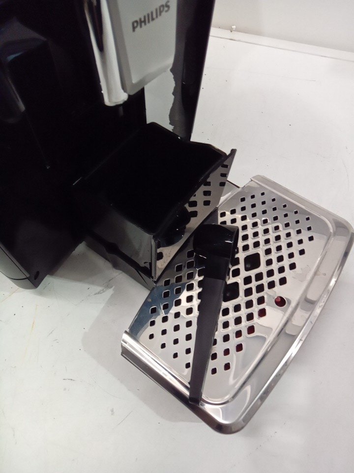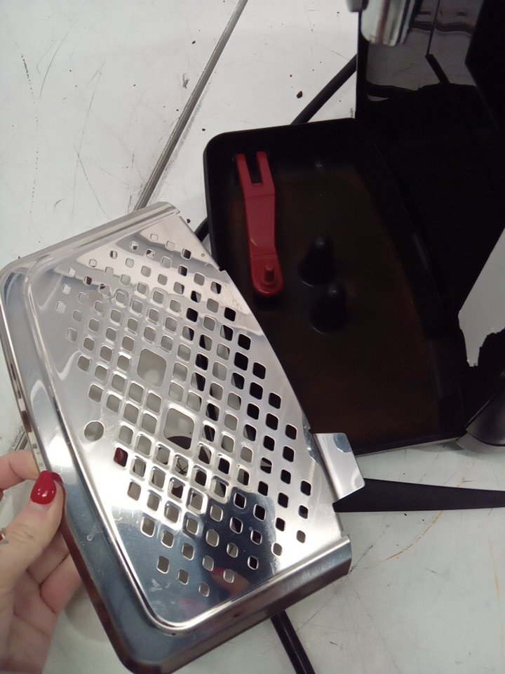 please note that there is lots of coffee marks and water on the machine from being used previously. also the black is peeling on the front of the item. tested for power.