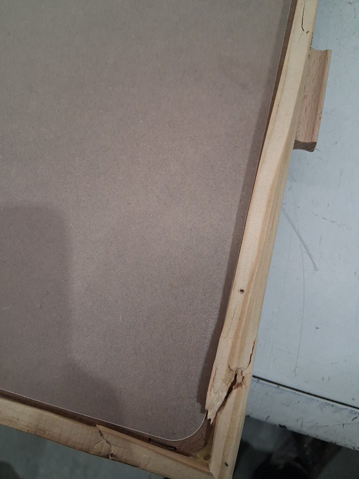 Item has mark and scuffs from previous use. Also, it's wood is little distressed from sides. (See photos)