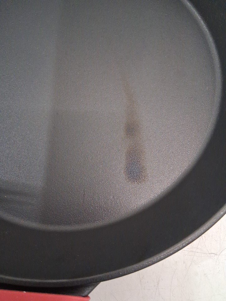 Singe markings on top and bottom of pan indicate prior short-term use. (See photos)