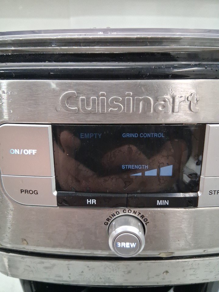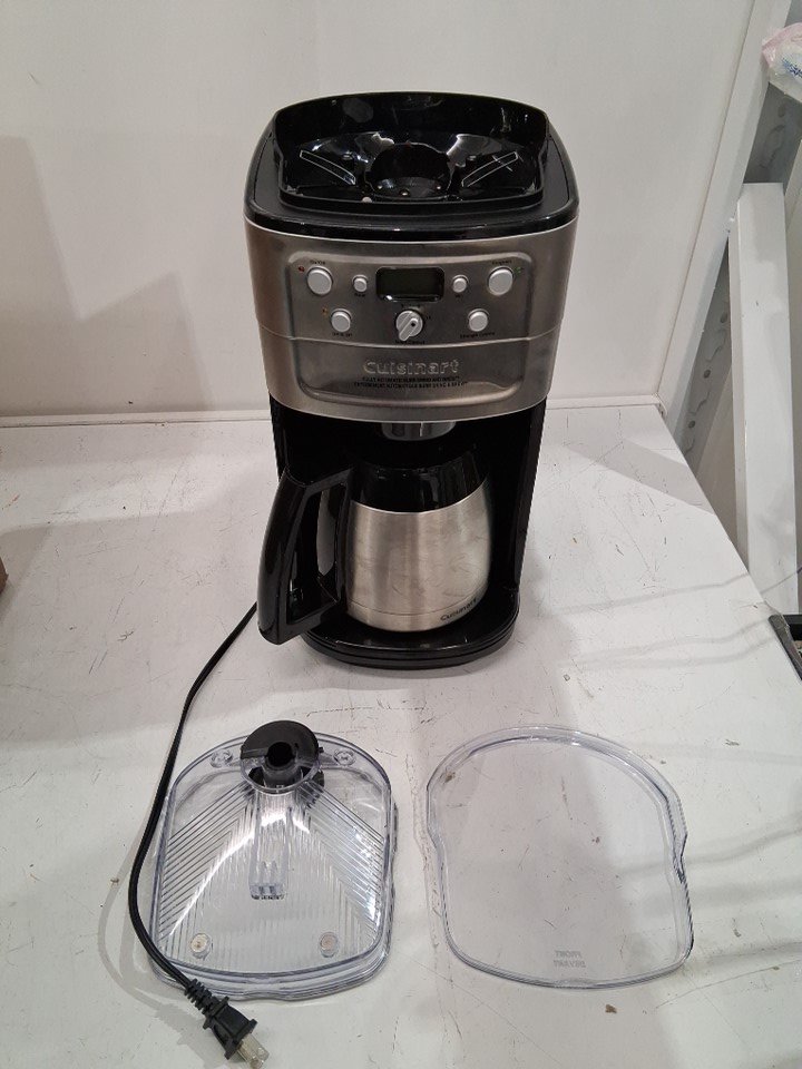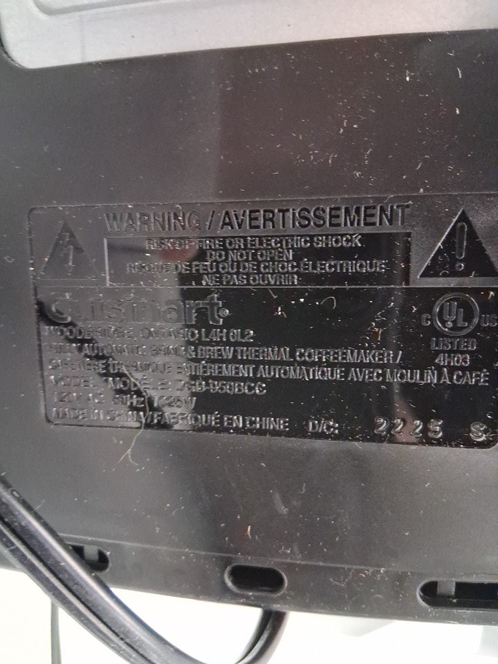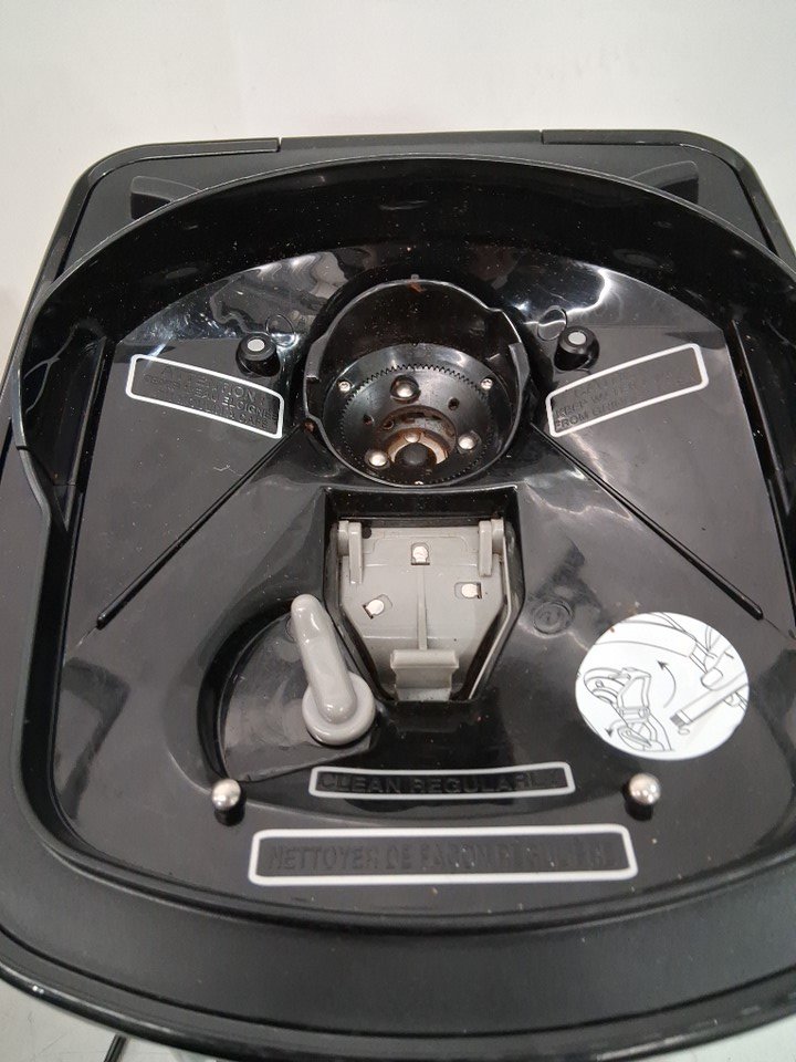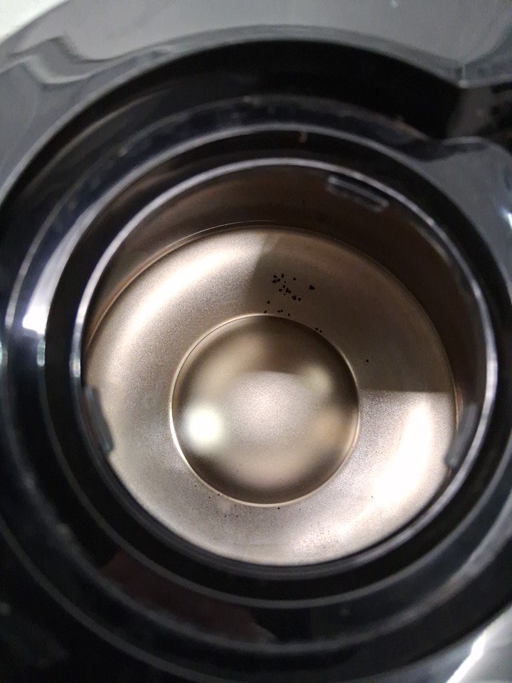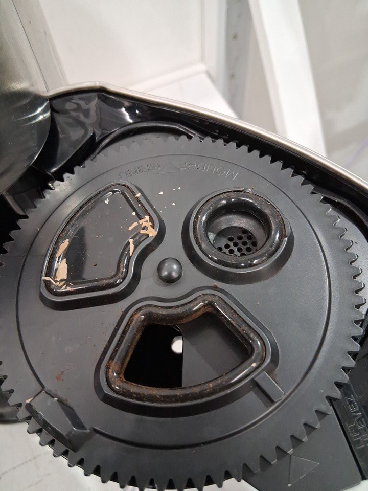 Product has some light coffee grounds throughout as well as a small bit of the plastic on the bottom has broken off (See photos) Tested for power