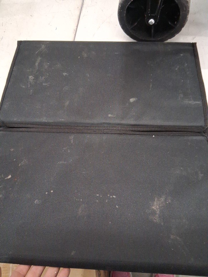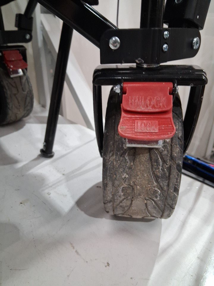 Product has some light debris and scratches throughout, and wheels has some ware (See photos)