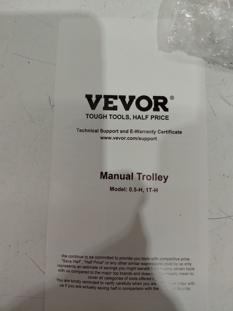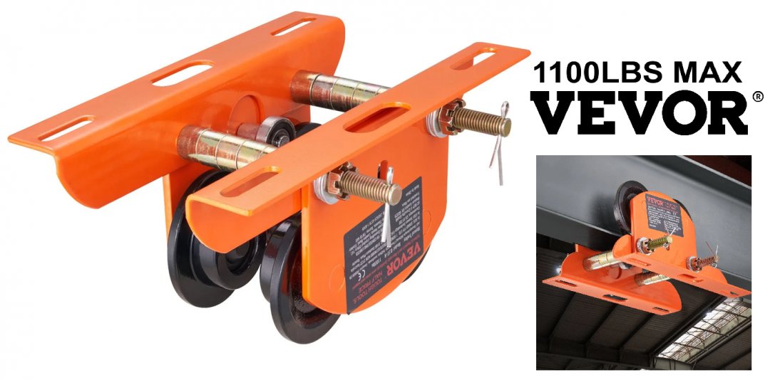 Electric Hoist Manual Trolley - 1100 lbs/0.5 Ton Max - Orange - (Model: 1T-H)
