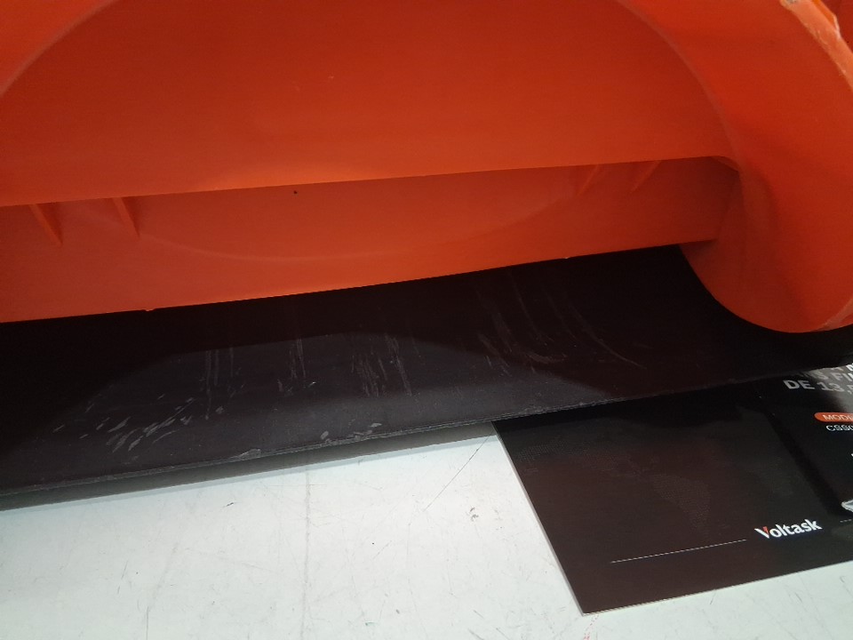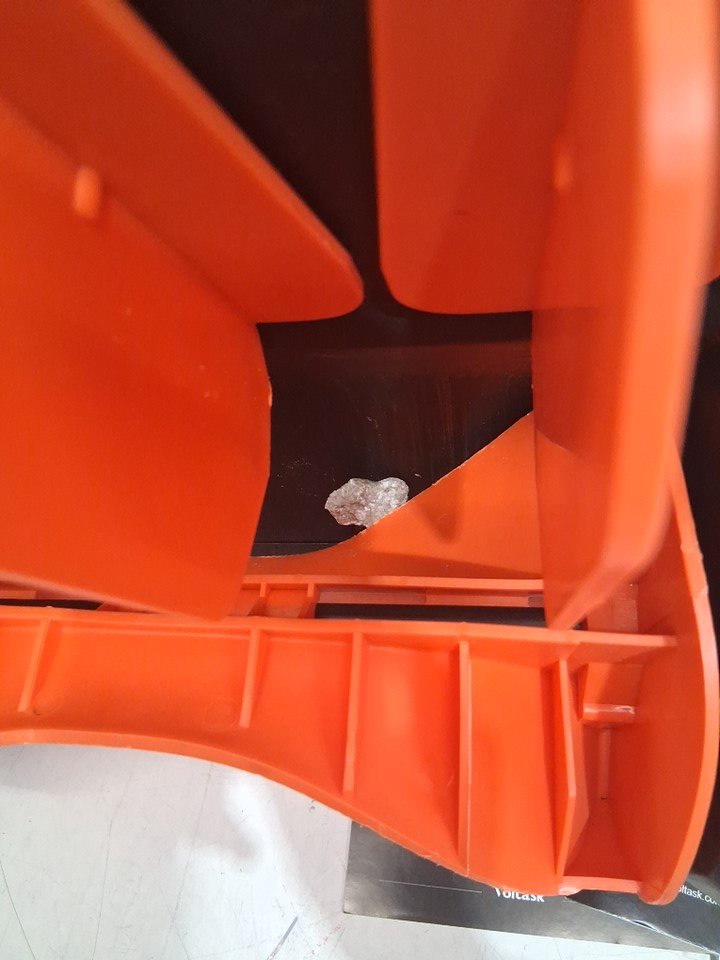 tested for power and it sounds as though it wants to go, however there is a rock jammed in the blade that needs to be remove before use. please see photos.