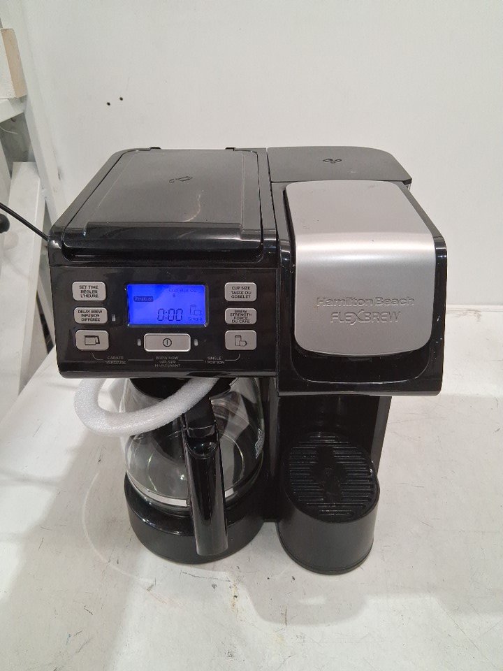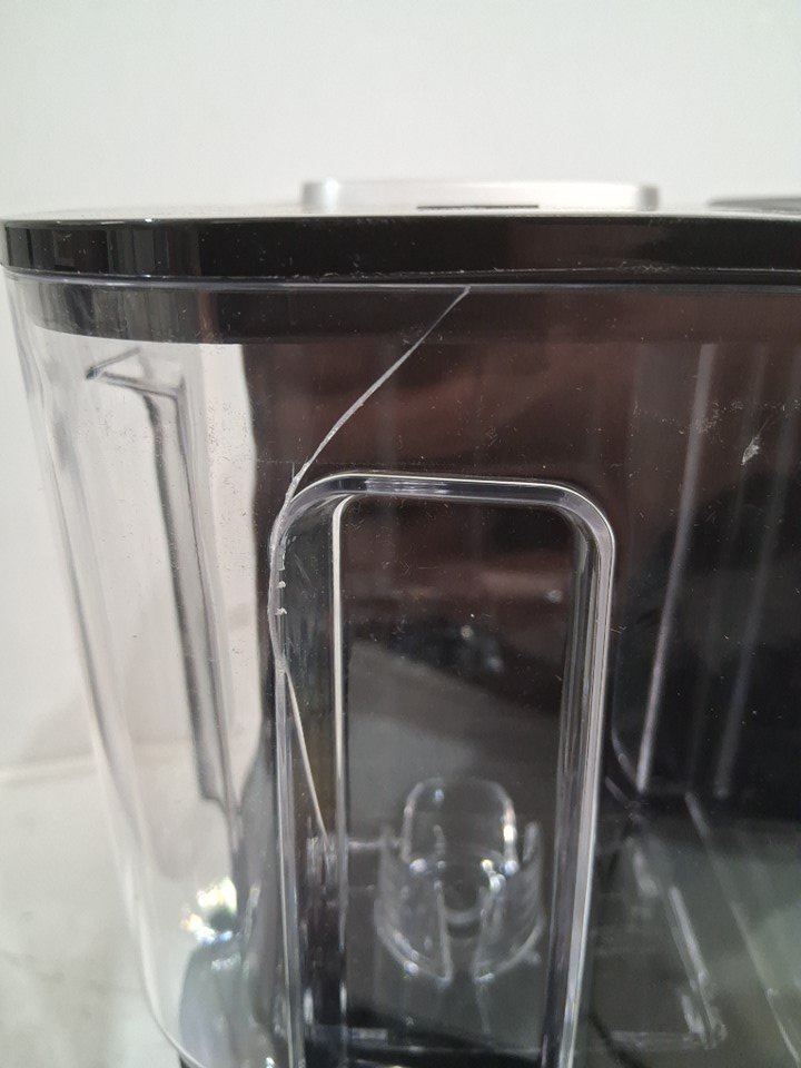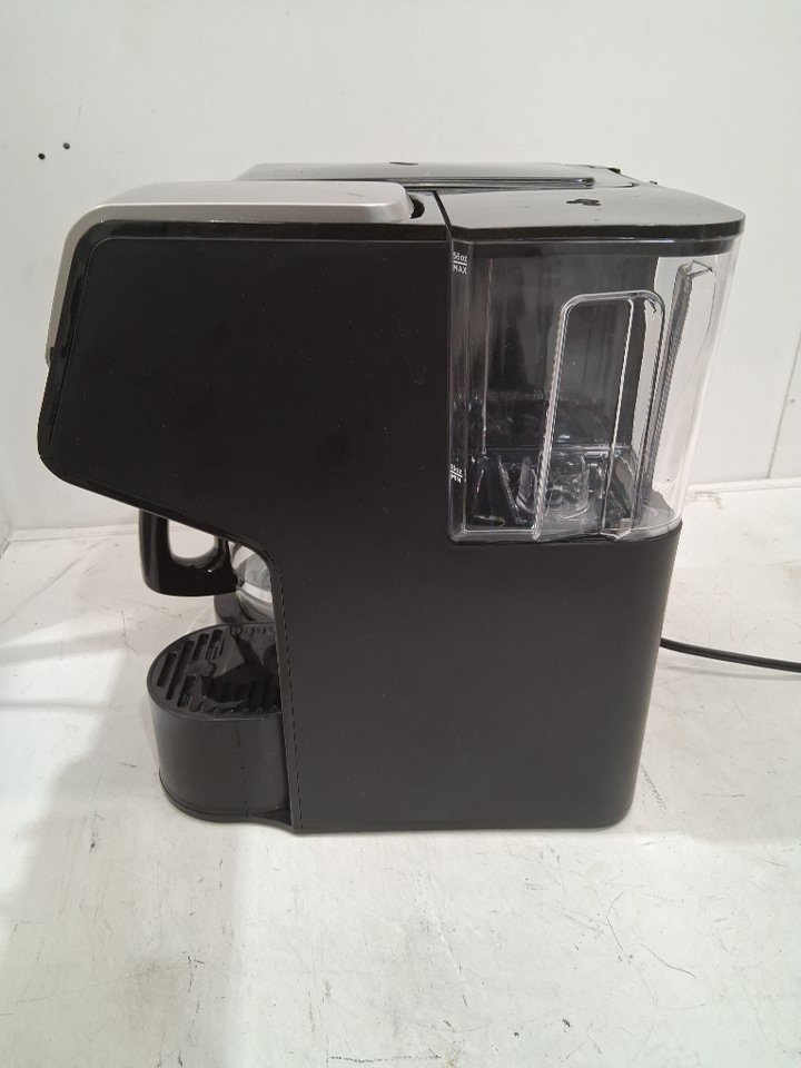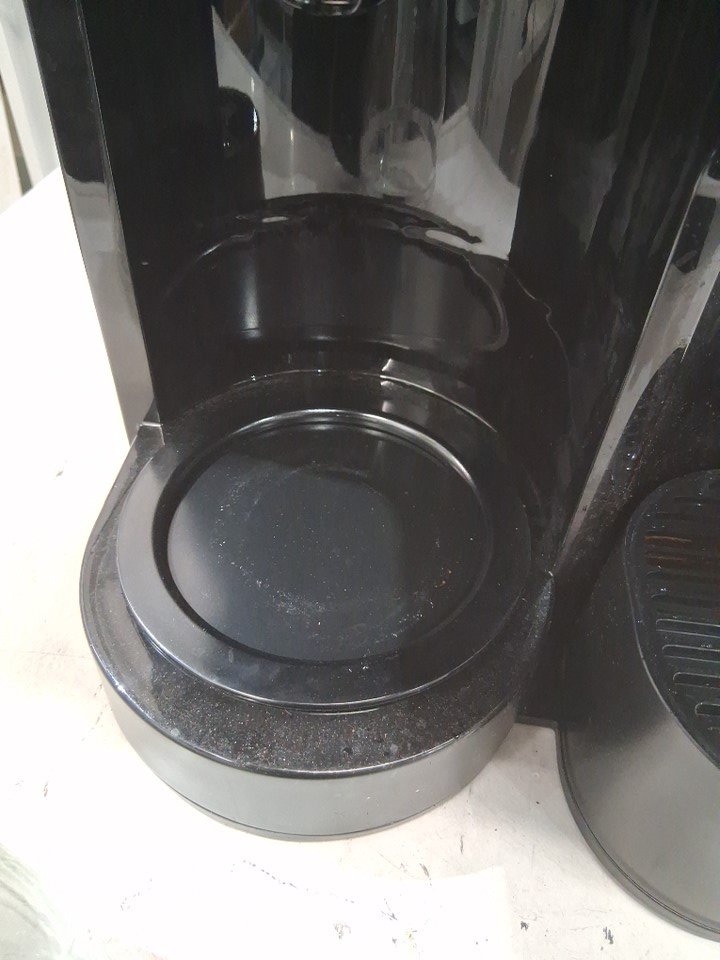 The water tank has a small crack in it, and there are some light coffee stains and water residue on/inside the machine indicating some prior use - see photos. Outside of this, the machine appears to be in good condition and function without any issues. Tested for power and basic function.
