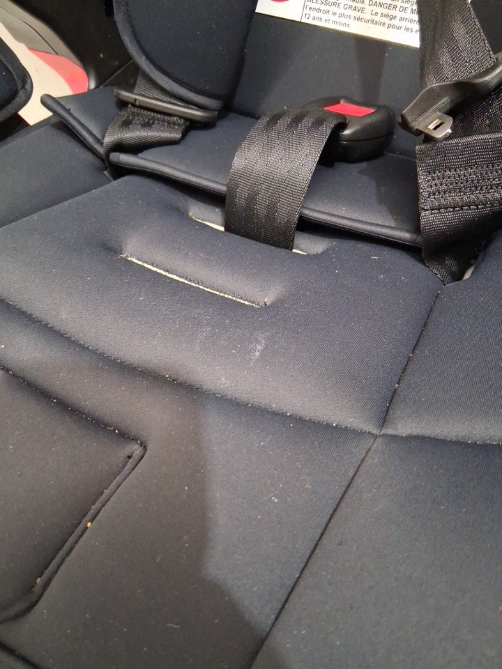 please note the product was discovered to have some fraying in the fabric, along with this we found the product to have some light dust, dirt, and scuff marks on it, this can be cleaned, please see photos for more details