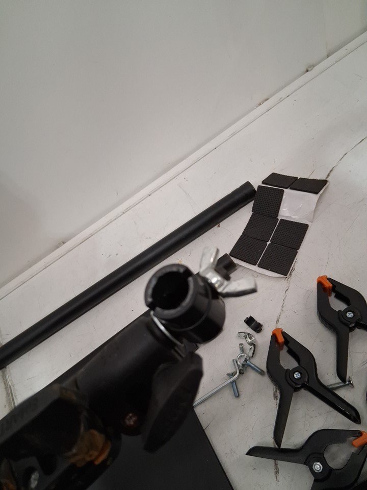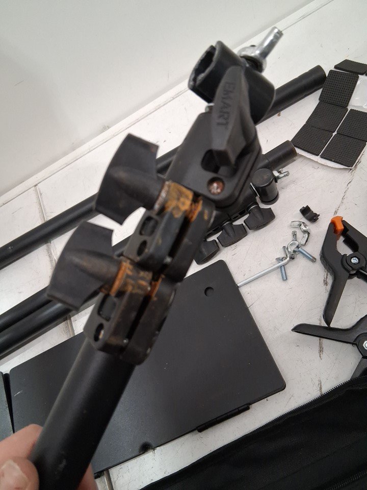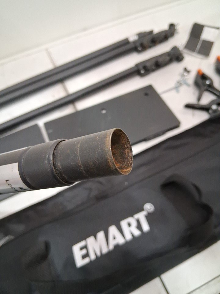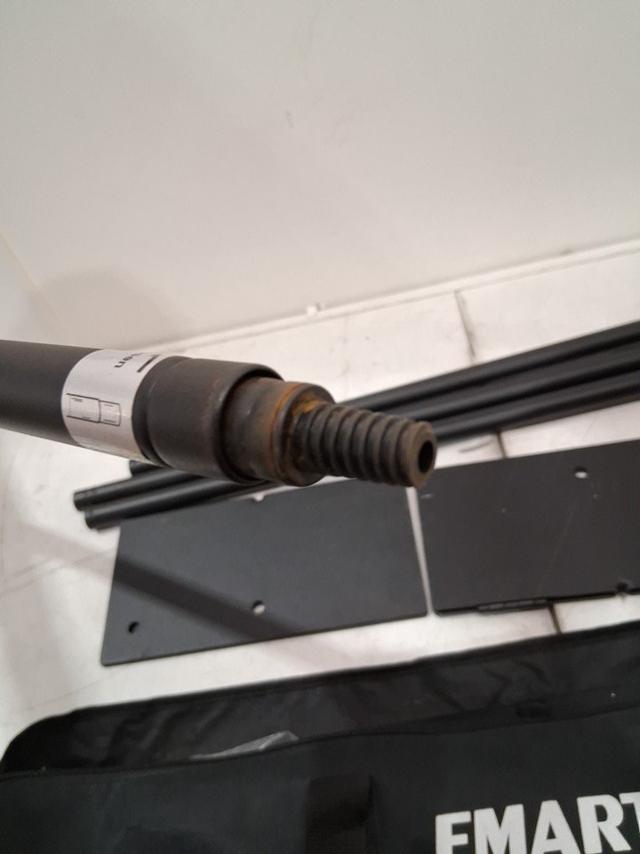 item has some rust spots and wear from previous use please note there is a tear in one end of the carrying bag as well as one of the plastic caps have broken but could still be used for assembly (see photos)