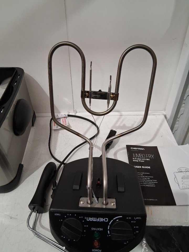 scorch marks on the rod, dent on the lid and also has water marks -tells it's been used before, tested for power only