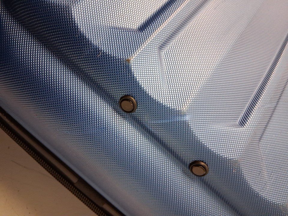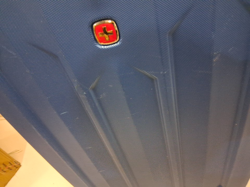 item has a light smell, small stain inside from prior use- Scuffs/scratches on outside (see photos)