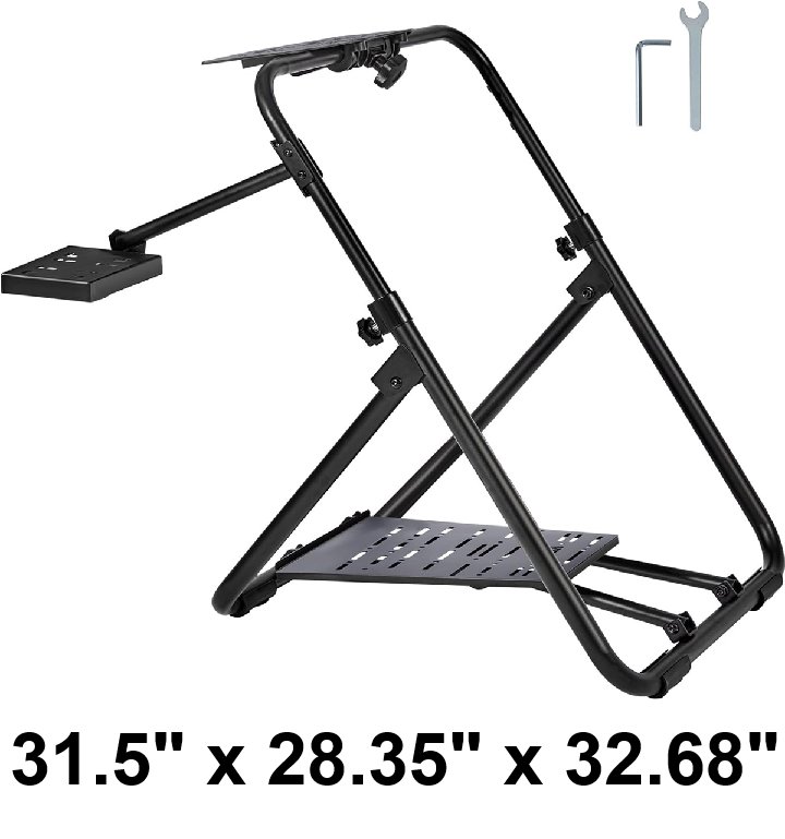 Foldable Racing Steering Wheel Stand, Height Adjustable Universal Base Compatible with Logitech & Thrustmaster Racing Wheel and Pedal - 31.5" x 28.35" x 32.68" - Black - (Model: WS-L01)