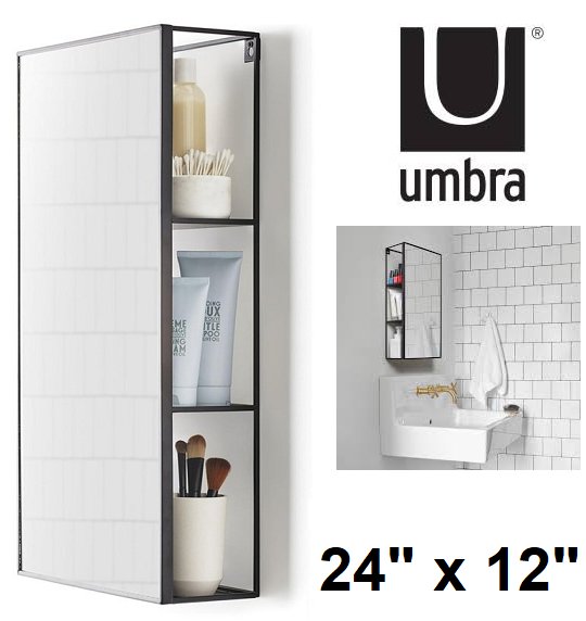 Umbra wall mounted shelf Cubiko Mirror and Storage Unit - 24" x 12" - black