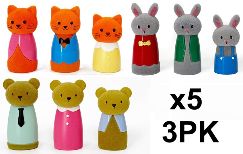 5 (3PK) Bullseye's Playground Small Doll House Figures - 3" - RABBIT/BEAR/CAT