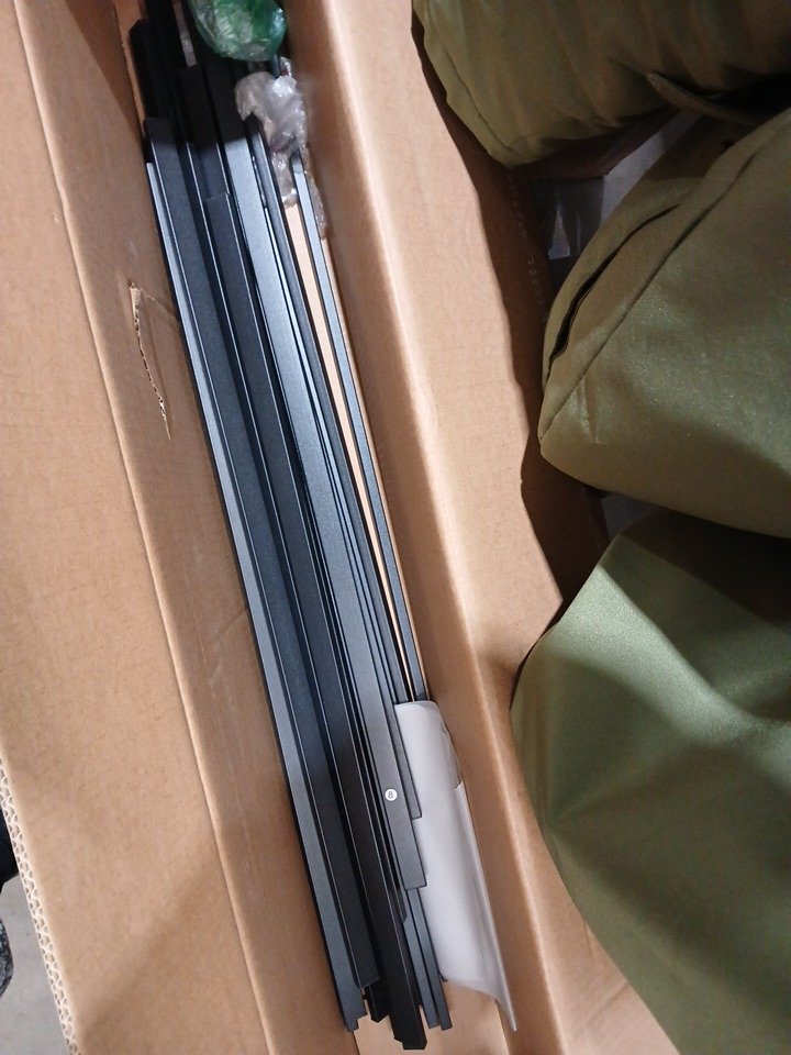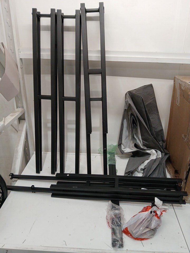 Please note there is a presence of scuffs on connecting points of the box spring, indicating prior use. Additional generic hardware may be required.