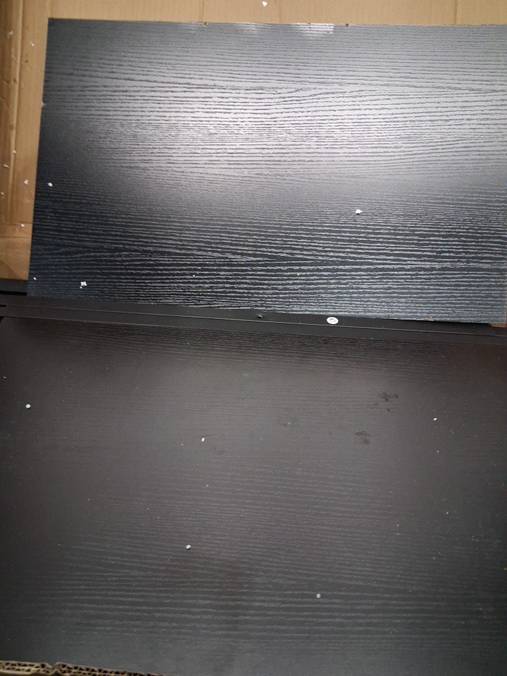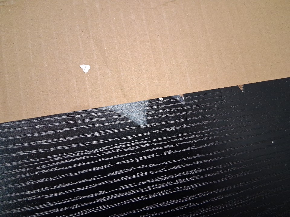The bottom piece for the cabinet has some light chips/marks on the edge of the panel (see photo)