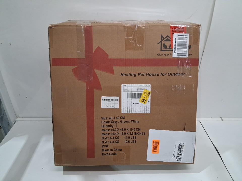 Lslpin Indestructible Heated Cat House with Escape Door - 17.7" × 14.9" × 17.5" - grey/white