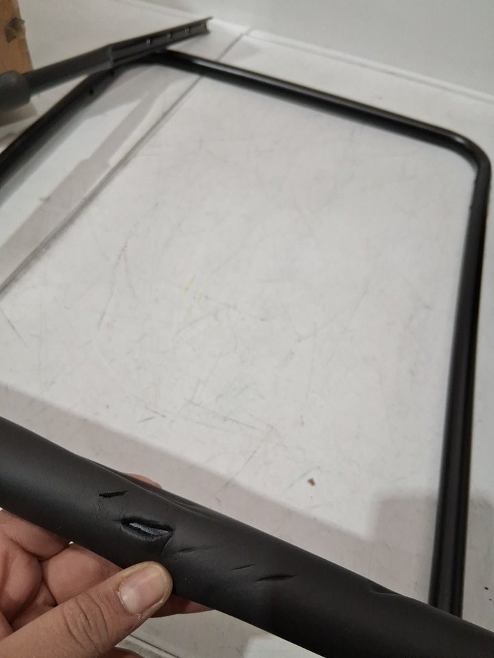 the foam on the handle has cuts, missing pieces to assemble (hardware) and has scratches all over