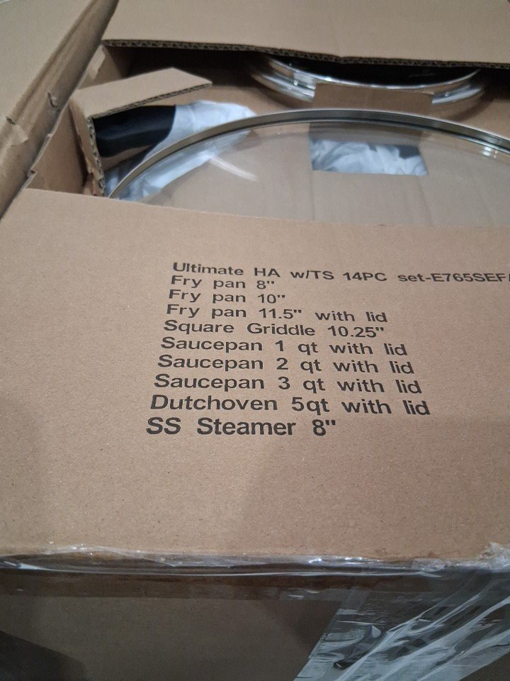 14PC T-fal Ultimate Hard Anodized Durable Nonstick Dishwasher Safe Cookware Set - Black (MODEL: 2100097218)