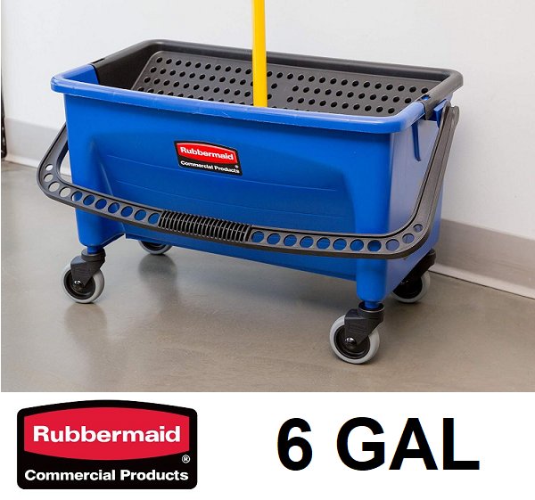 rubbermaid commercial hygen press wring bucket for microfiber flat mops - 6 GAL/22.7L - blue/black (model: q900-88)