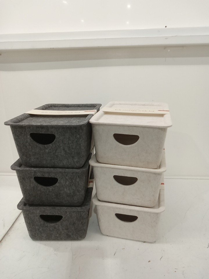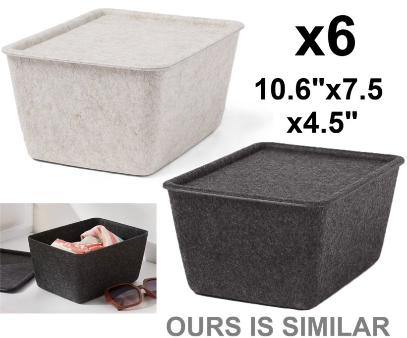6 Lidded Felt STORAGE with Lid - 10.6"X7.5"X4.5" - Oatmeal/CHARCOAL