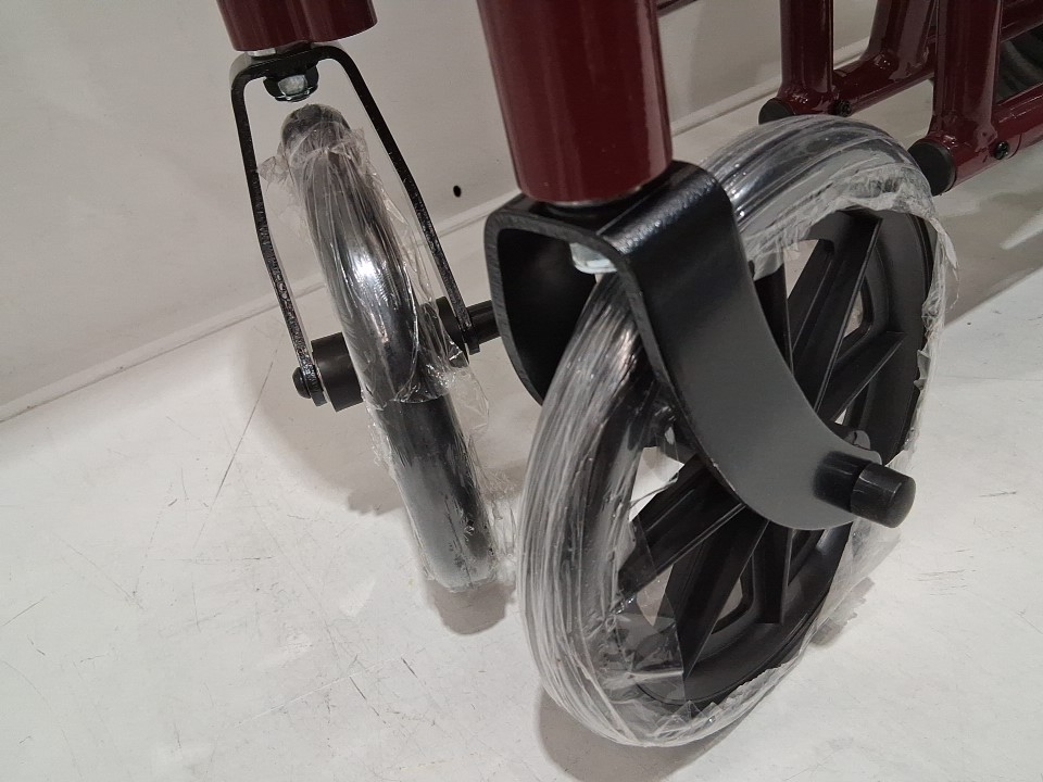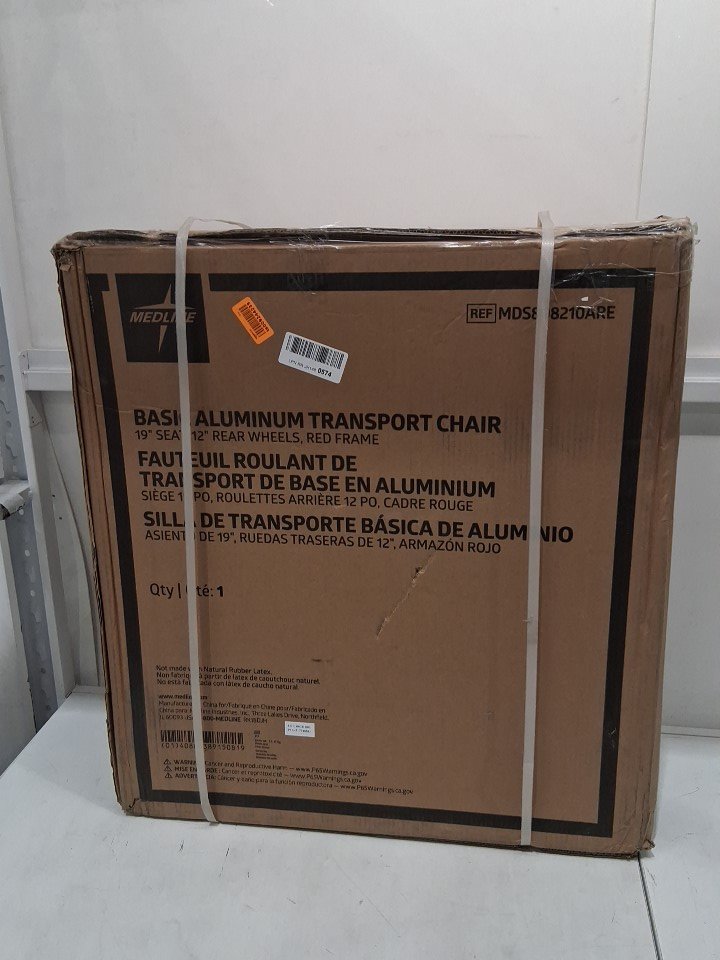 MEDLINE BASIC ALUMINUM TRANSPORT WHEELCHAIR - 19" seat - 12" REAR WHEELS WITH BRAKES - 300lbs capacity - RED (MODEL: MDS808210ARE)