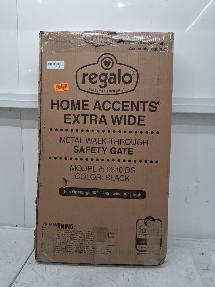 Regalo Home Accents Extra Wide Walk Thru Baby Gate - 30" to 42" - Black Cherry Wood (model: ‎0310DS)