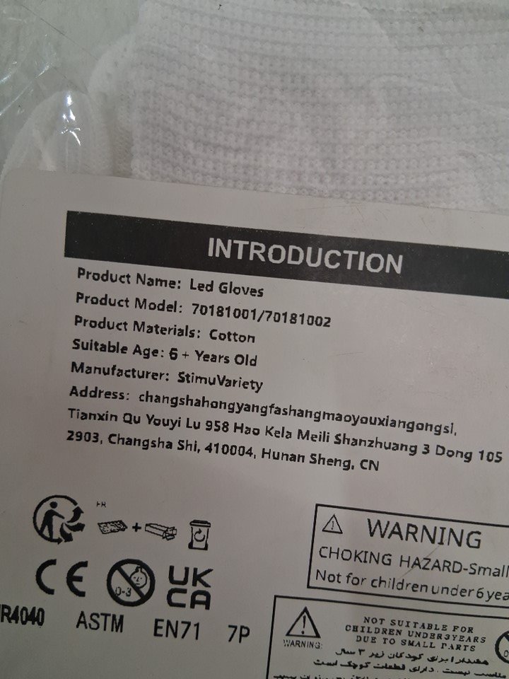 KIDS LED LIGHT UP GLOVES - OSFM - WHITE (MODEL: 70181001)