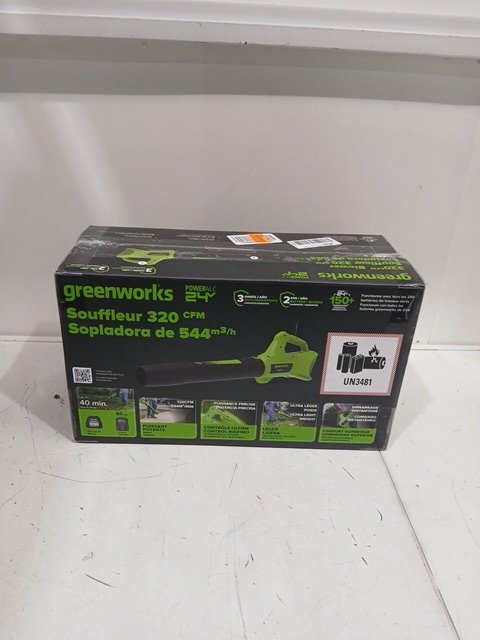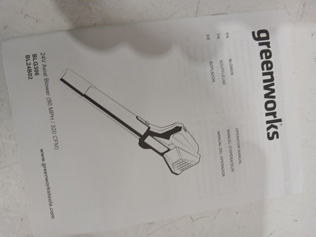 GREENWORKS BRUSHLESS AXIAL BLOWER FOR LAWN CARE AND MAINTENANCE 24V, 110 MPH,450CFM, GREEN/BLACK (Model: BLG306)