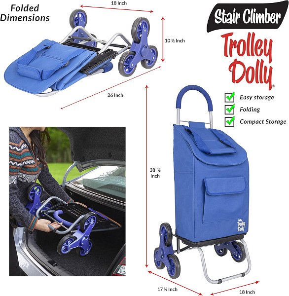 stair climbing trolley dolly foldable grocery cart - 110lbs cap - Blue/silver