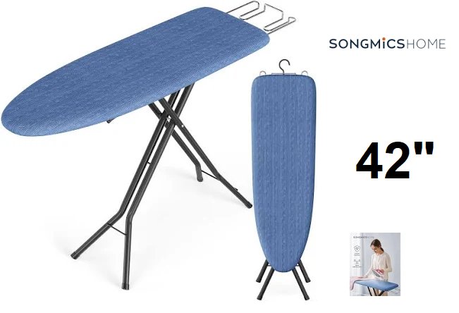 songmics home ironing board with 4 Layered Cover and Pad, Iron Rest, Hook, Steel extra legs - 42" - blue (model: llb001q01)