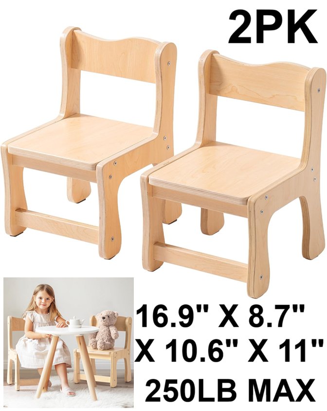 2PK robud kids wooden chair set - 1.9"x10.6"x11"x8.7" - 250lb max - (model: WG499)
