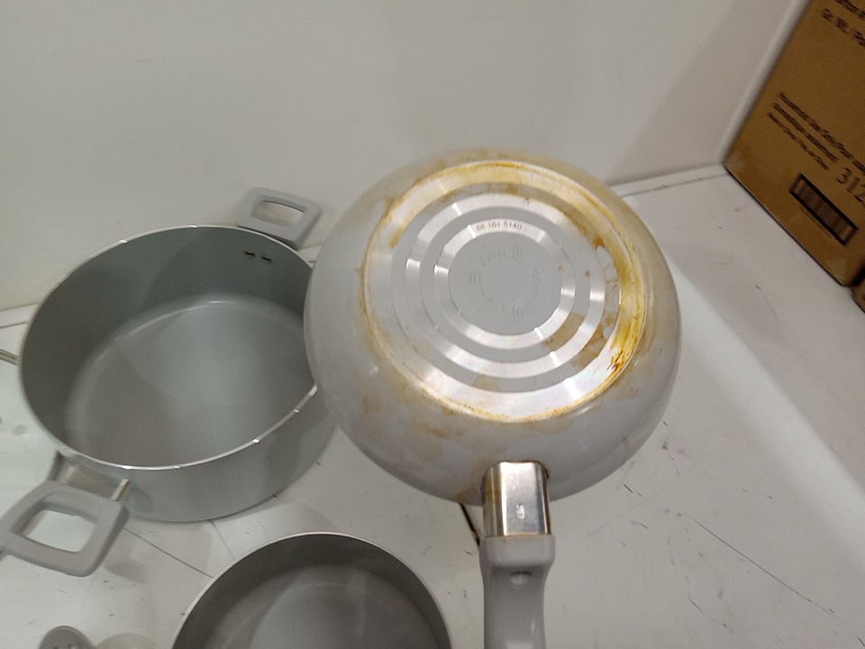 the medium sized frying pan have cooking marks on the bottom and sides, please see photos