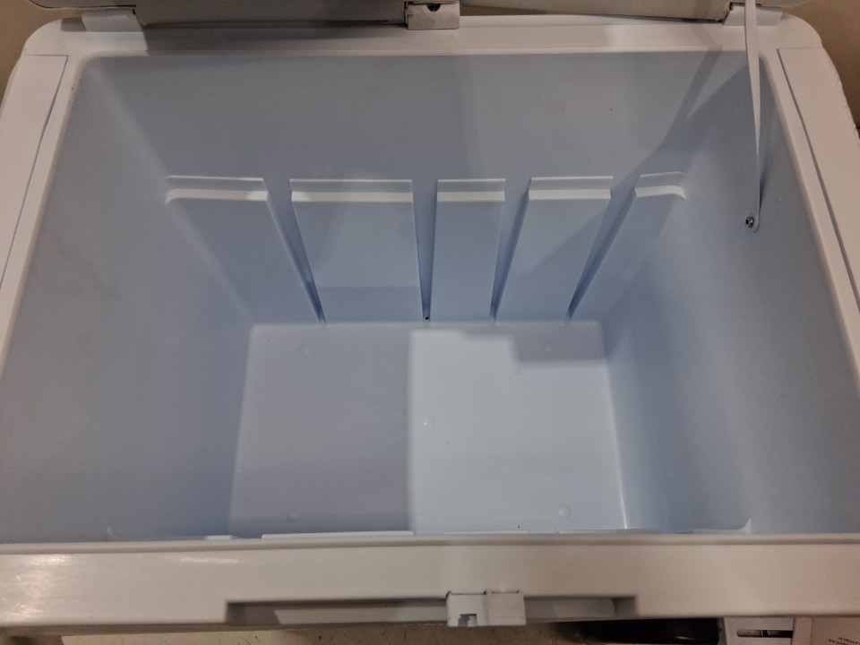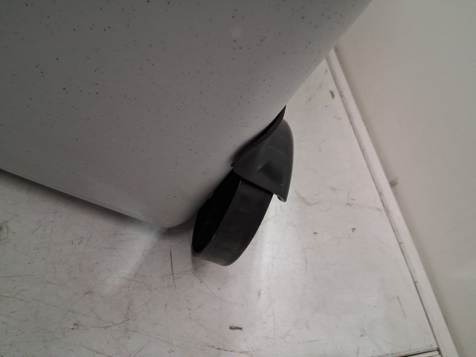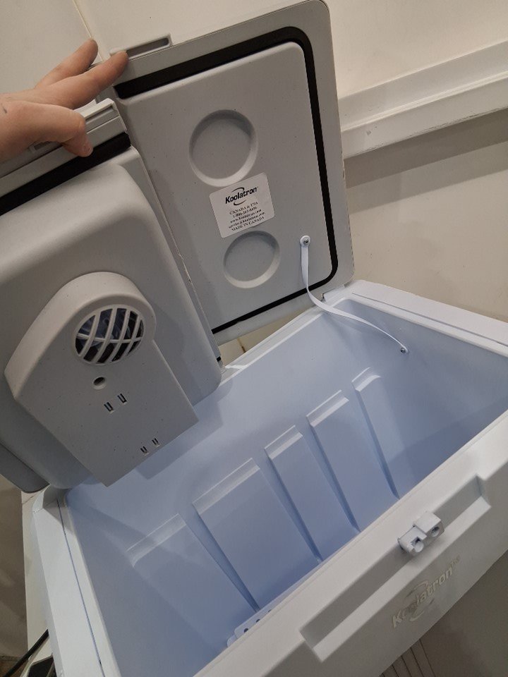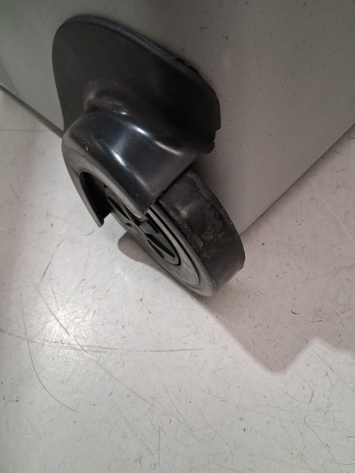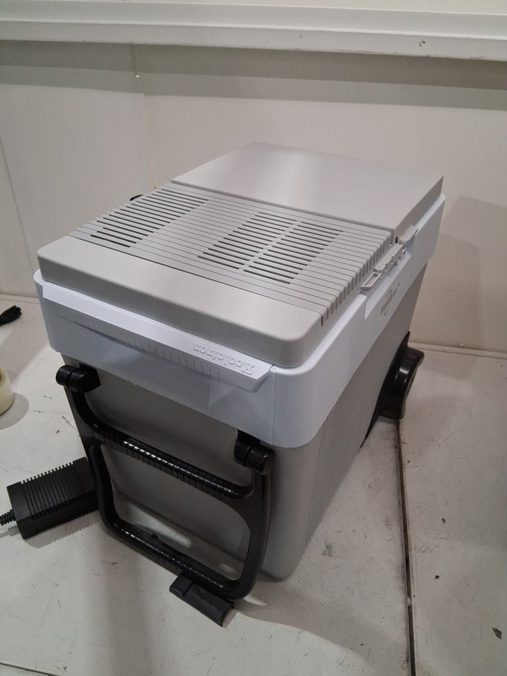 please note item has some scuffs inside and lightly on wheels from previous use one of the door hinges has broken so door doesn't open smoothly. second side hinge has small crack in it. latch has come off, unsure if can't be reattached item is missing wall plug but has car port item was tested for power